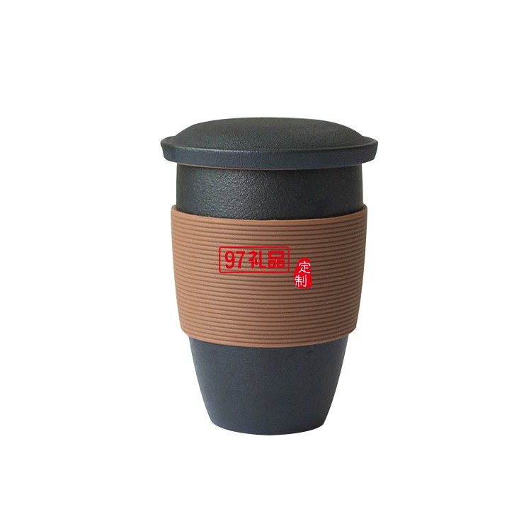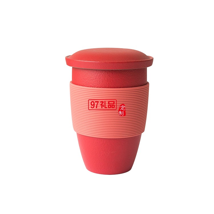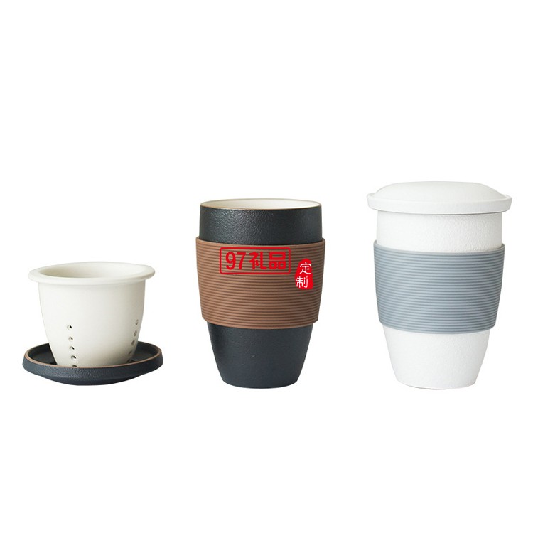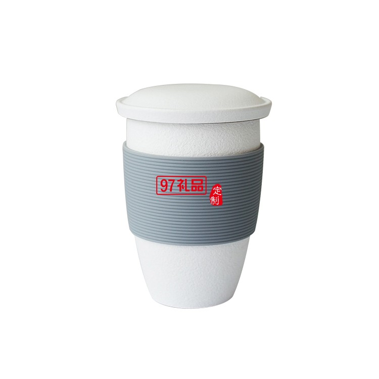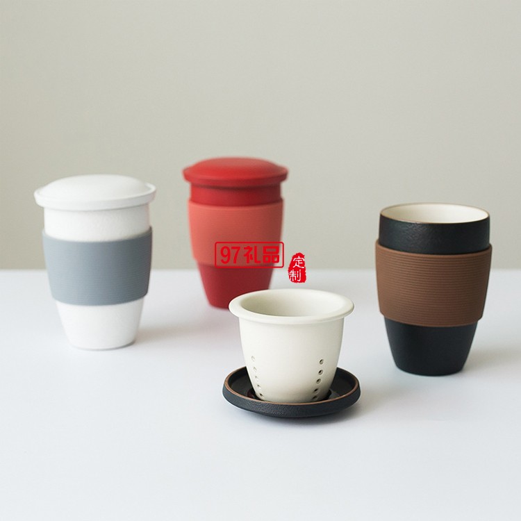 小皿泡茶杯 茶水分離帶過濾網(wǎng)硅膠套創(chuàng)意禮品陶瓷杯