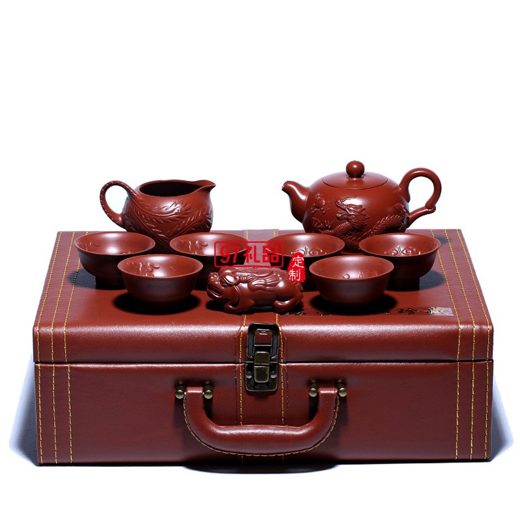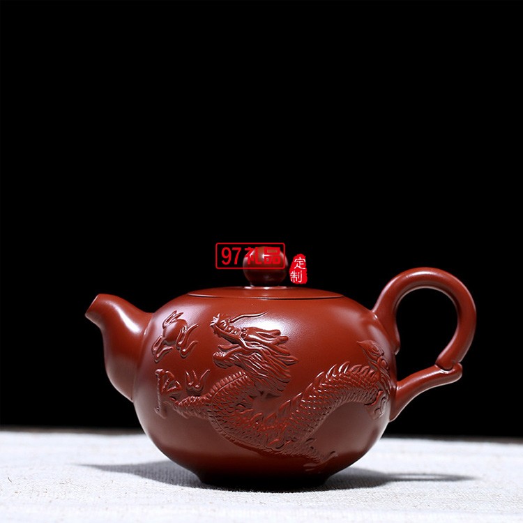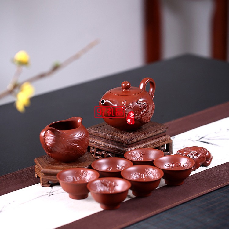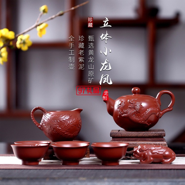 紫砂茶套壺原礦大紅袍立體小龍鳳紫砂壺高檔商務(wù)禮品定制