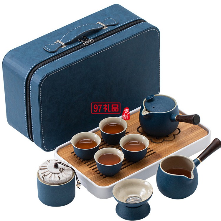 側(cè)把壺旅行茶具套裝戶外家用便攜式收納黑陶功夫茶具