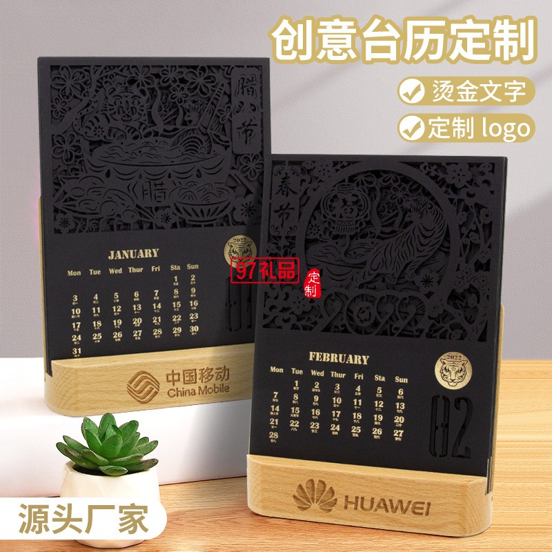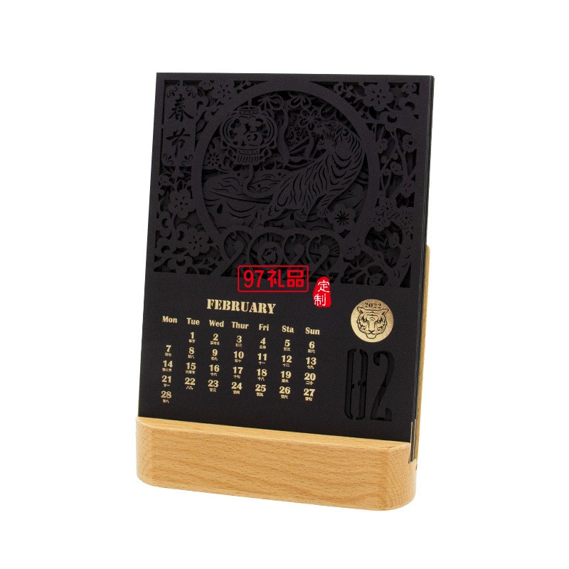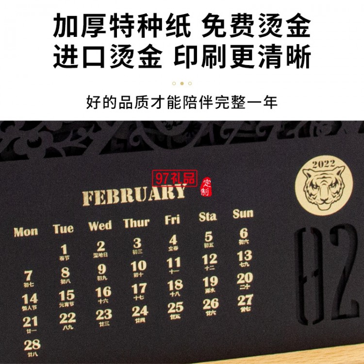 2022虎年臺歷鏤空紙雕辦公室桌面擺件