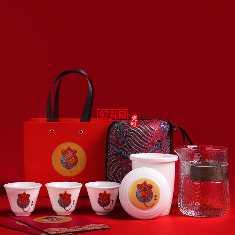 創(chuàng)意旅行茶具套裝家用2020鼠年賀歲茶禮茶壺茶杯陶瓷便攜式快客杯