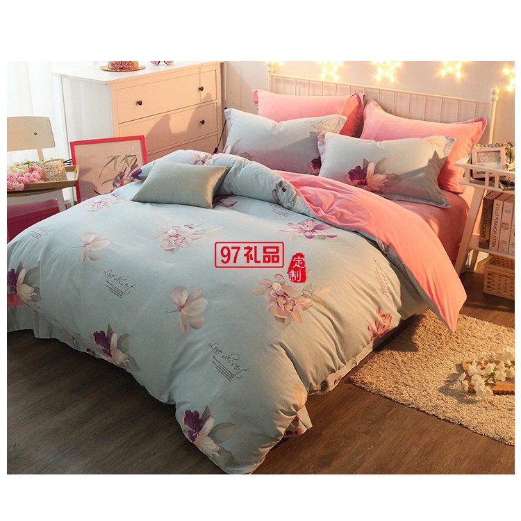 AB版純棉水晶絨四件套 純棉印花四件套床上用品雙人被套