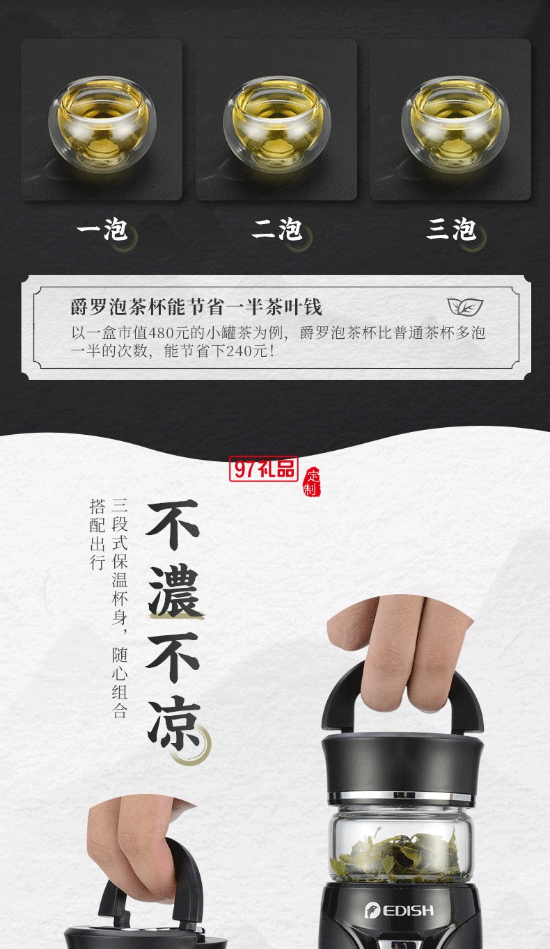 汽車案例 德國EDISH保溫杯316不銹鋼便攜茶水分離泡茶杯