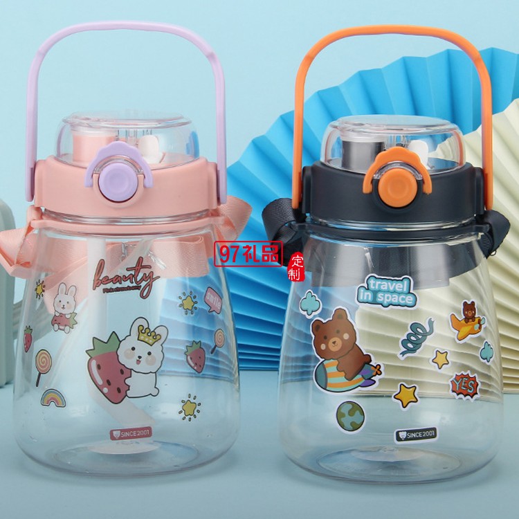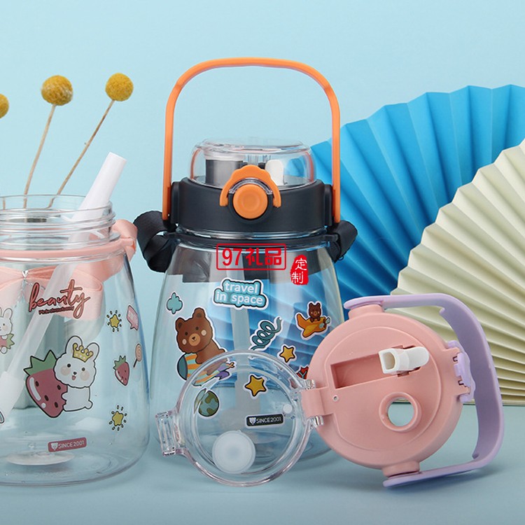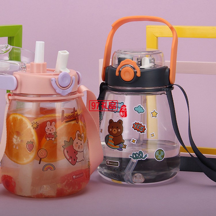 網(wǎng)紅高顏值塑料吸管杯兒童雙飲大肚子水杯大容量