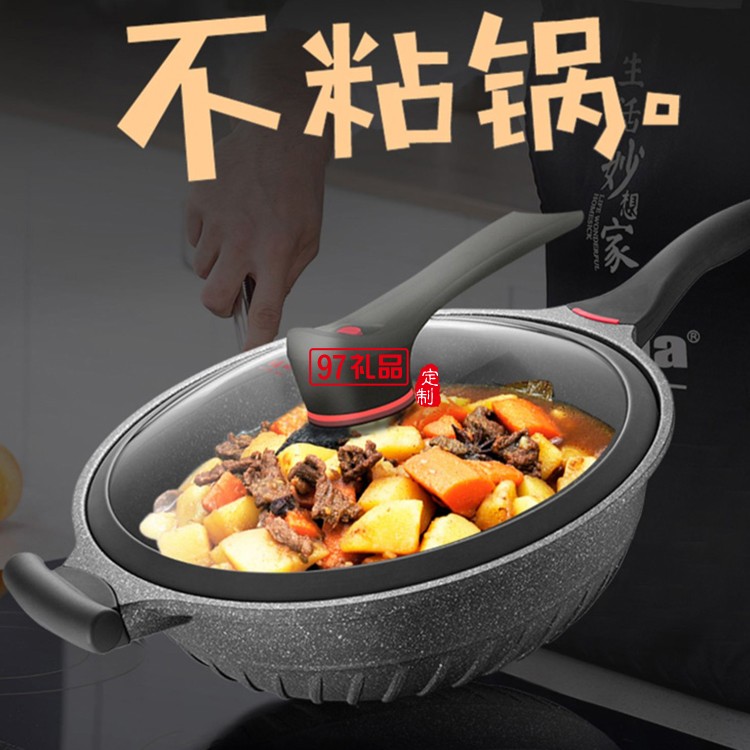 歐美達(dá)麥飯石鍋不粘鍋炒鍋炒菜鍋無(wú)油煙HZC32-B定制公司廣告禮品
