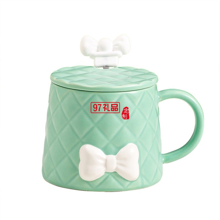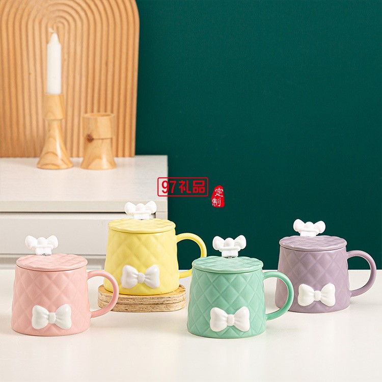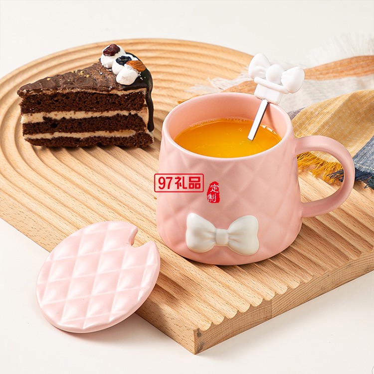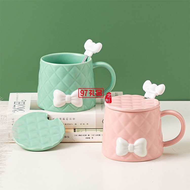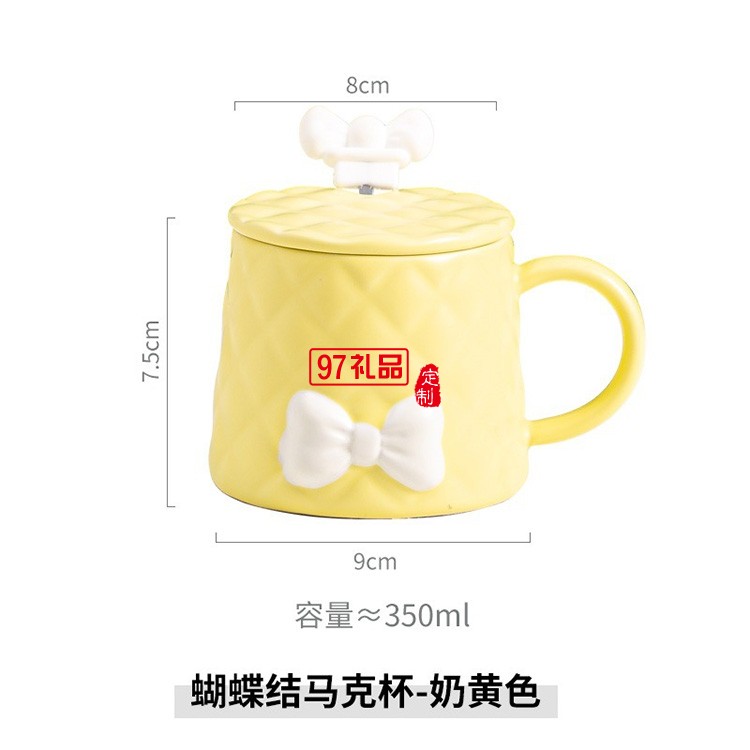 新品北歐少女系列馬克杯套裝清新蝴蝶結(jié)陶瓷杯 可定制logo
