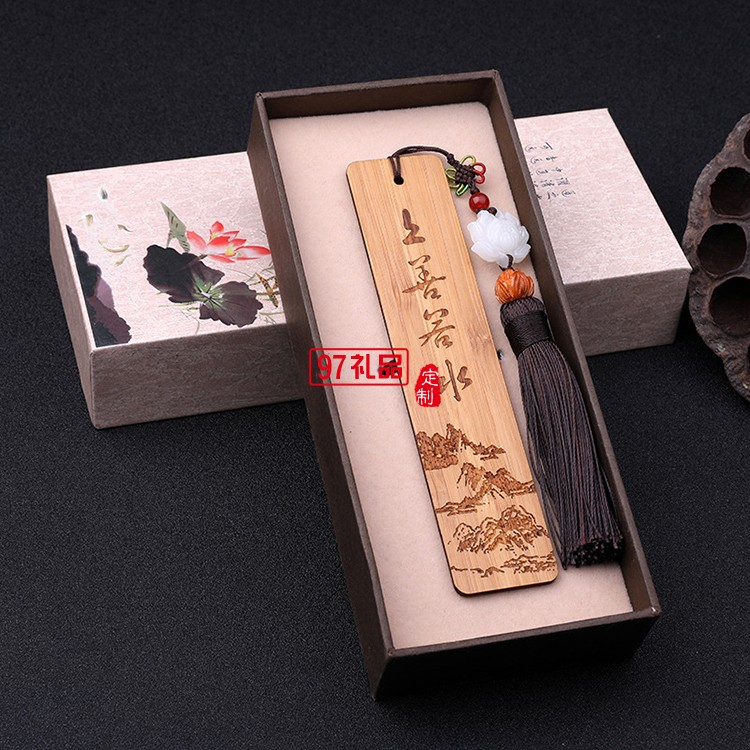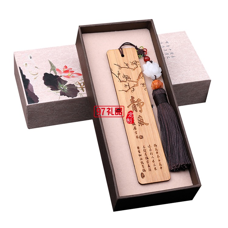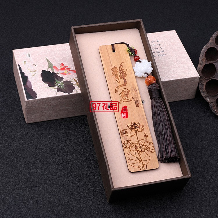 創(chuàng)意竹木單品書簽 精美盒子包裝 福利促銷小禮品 富貴平安書簽LOGO定