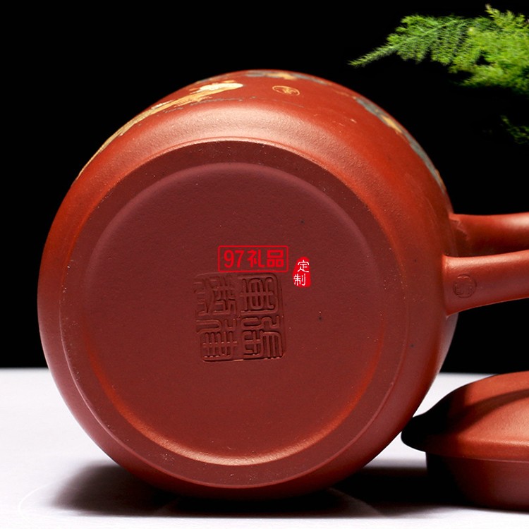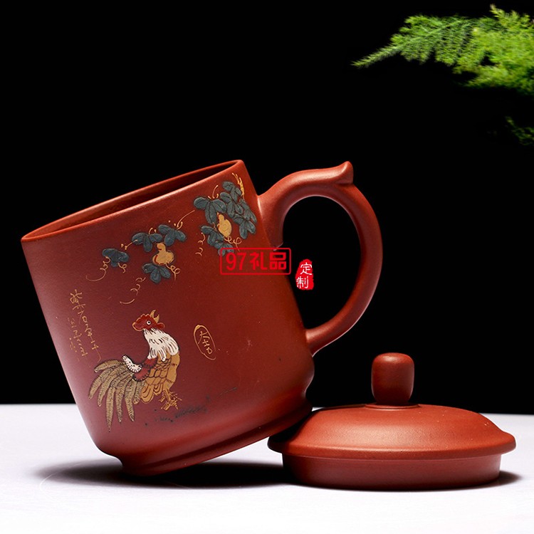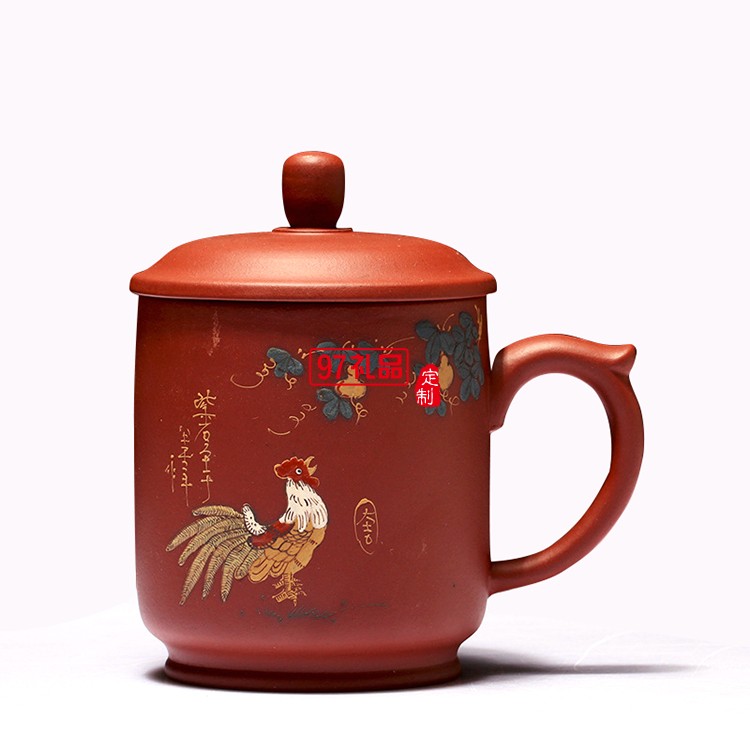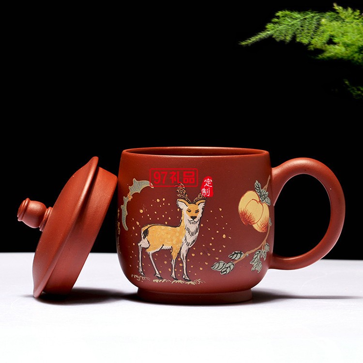 紫砂杯陶瓷茶杯全手工泥繪紫砂杯 把手杯禮品杯禮盒套裝可定制logo