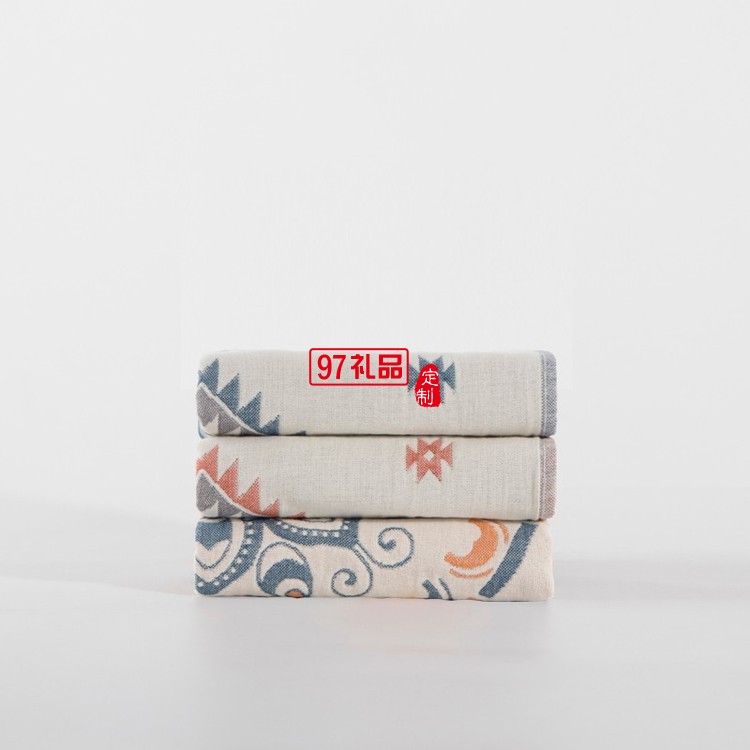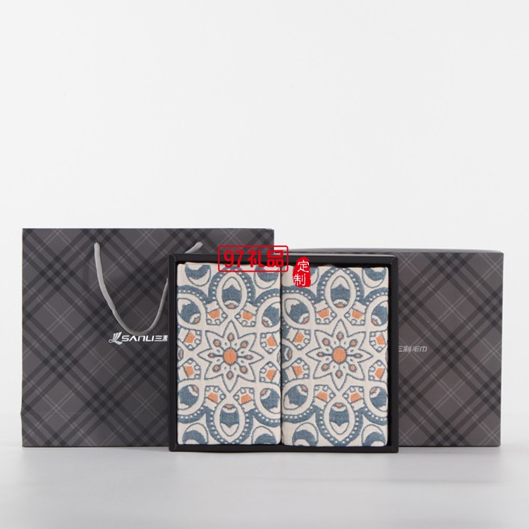 三利 枕巾禮盒2條 純棉四層紗太陽花枕巾套裝定制公司廣告禮品