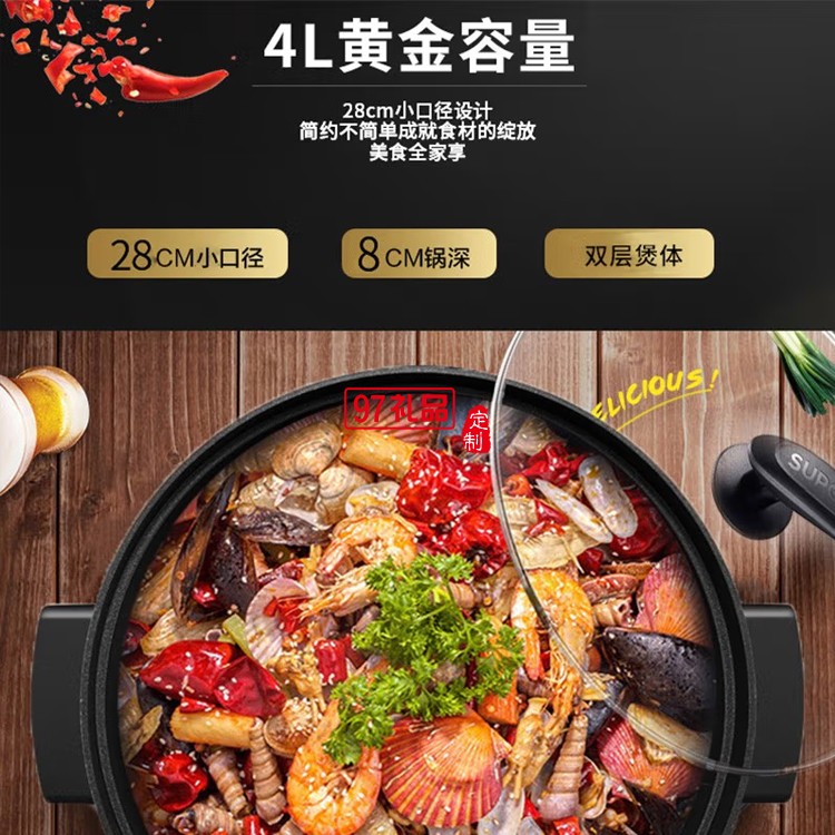 蘇泊爾電火鍋4L多功能火鍋不沾電煮鍋H28YK12定制公司廣告禮品