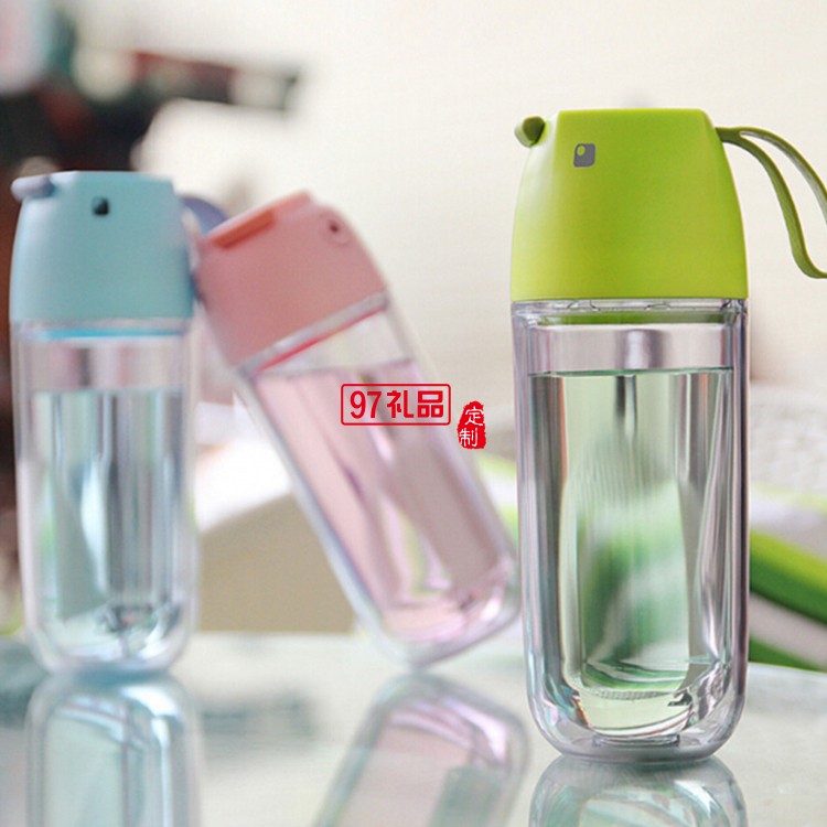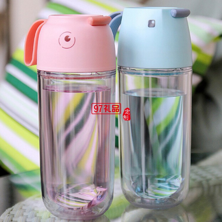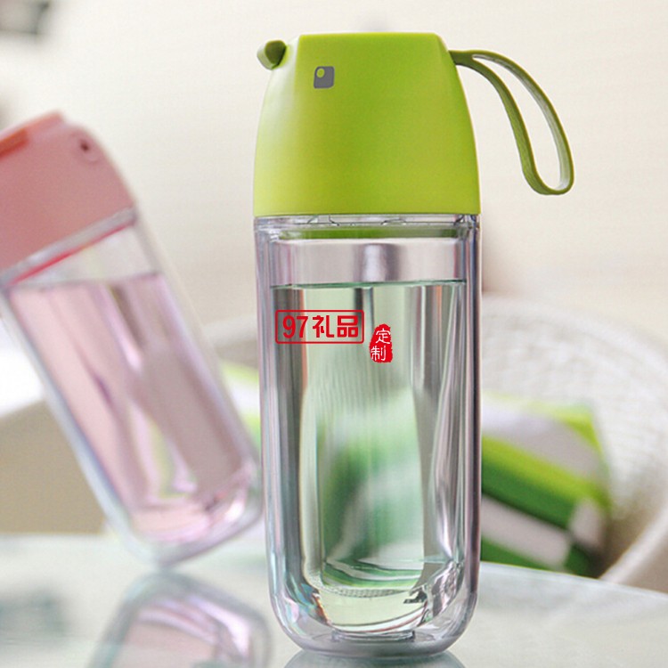 雙層塑料杯子 創(chuàng)意便攜運動水杯 學(xué)生隨手杯