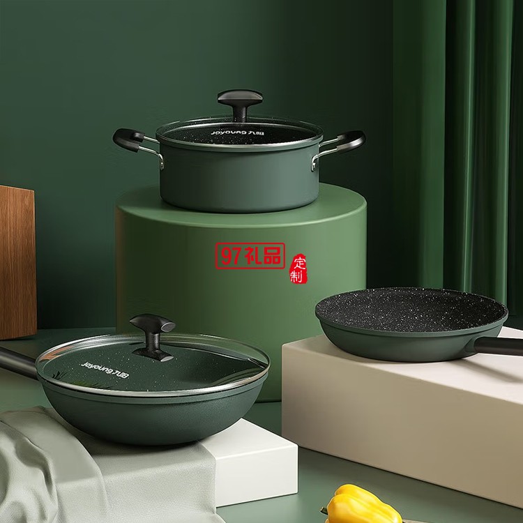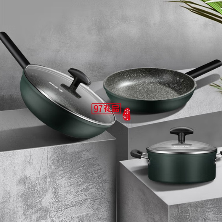 九陽(yáng)不粘炒鍋煎鍋湯鍋奶鍋三件套裝CF-T0563定制公司廣告禮品