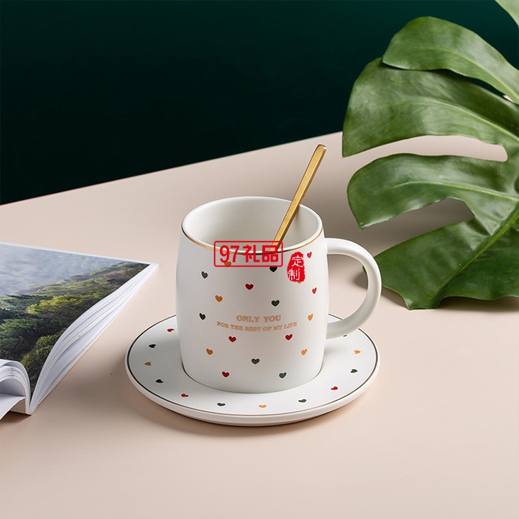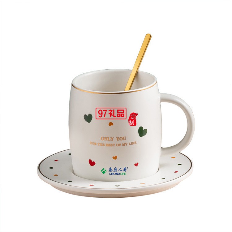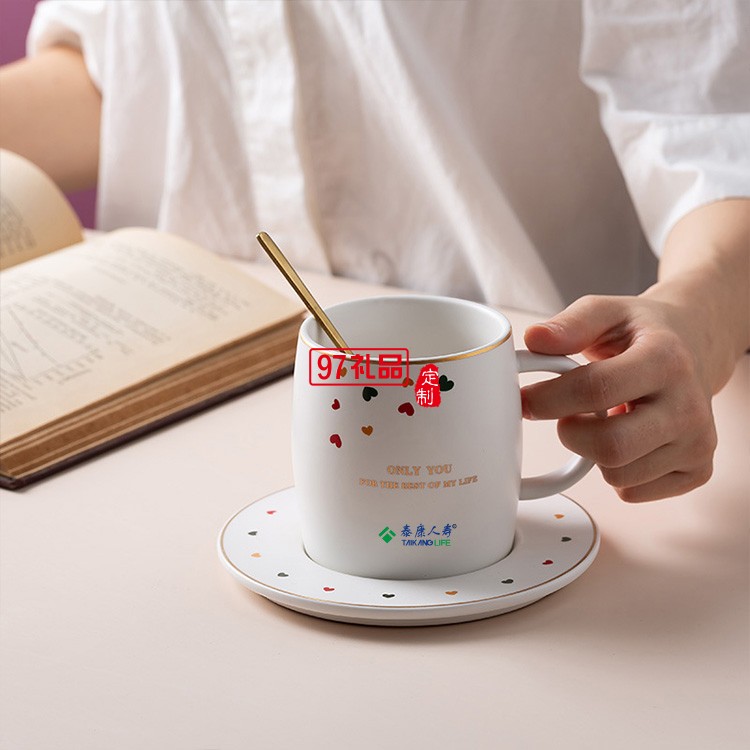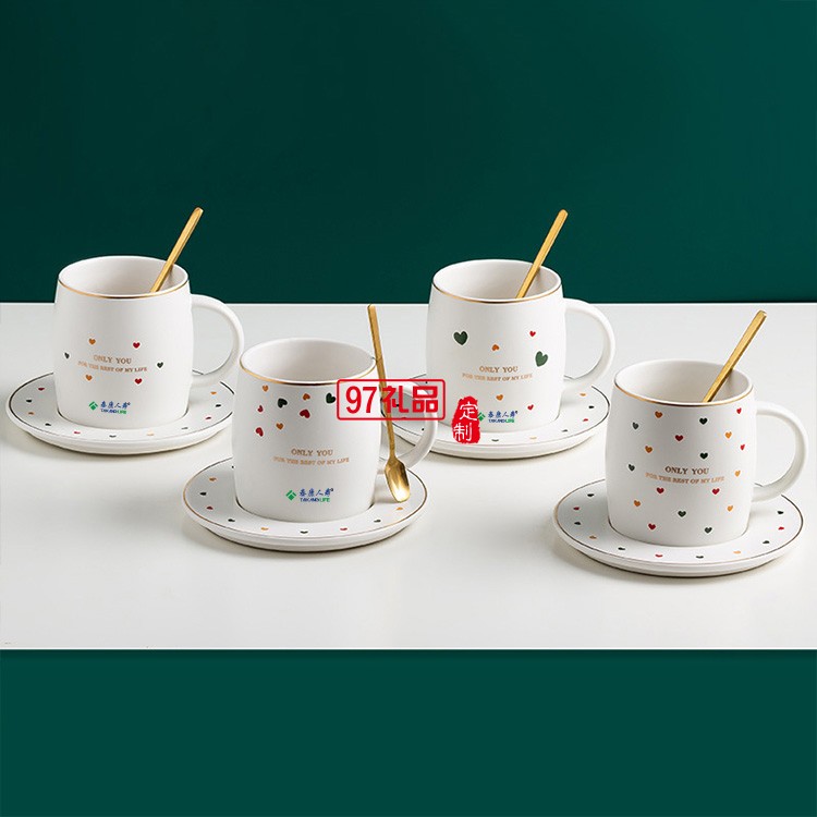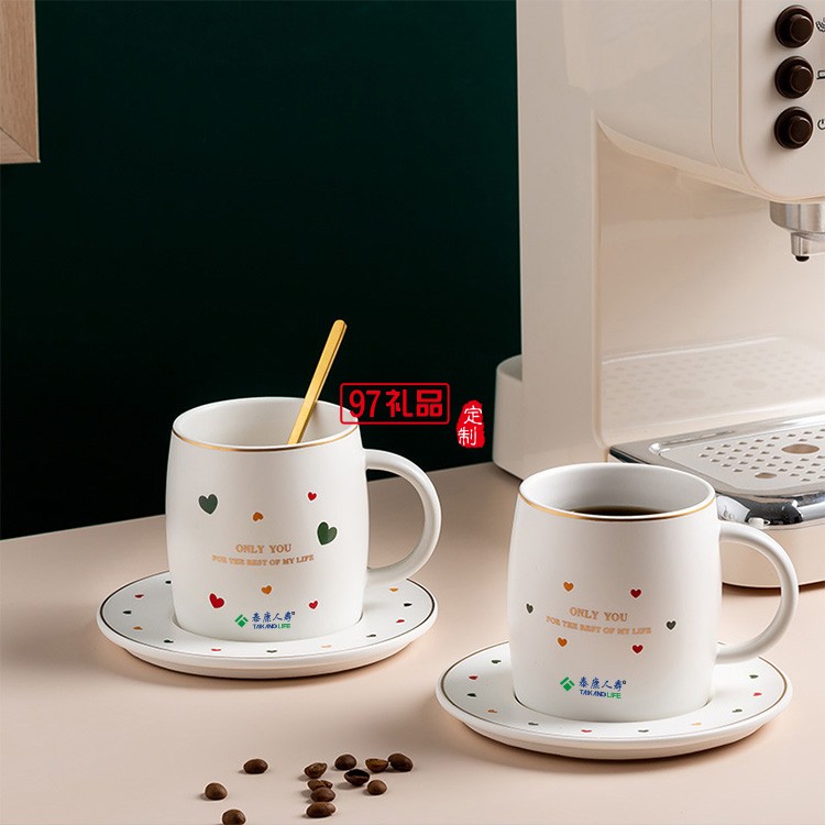 泰康人壽定制 簡約歐式描金桃心咖啡杯碟陶瓷杯馬克杯 可定制logo