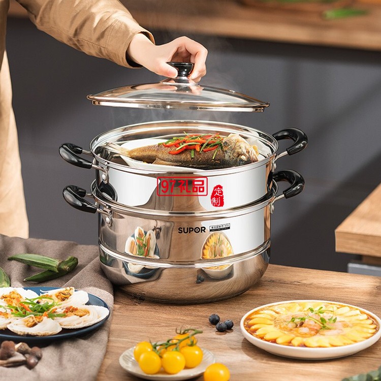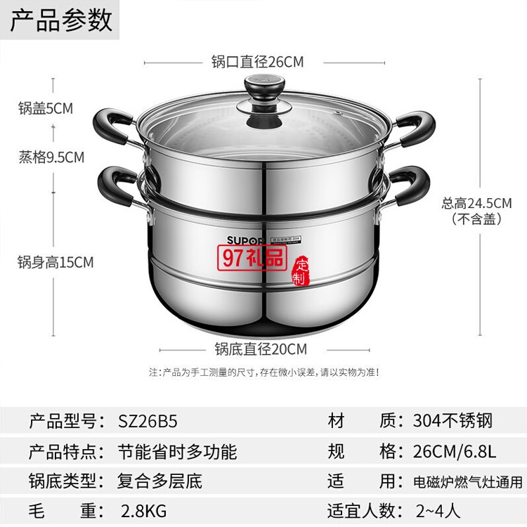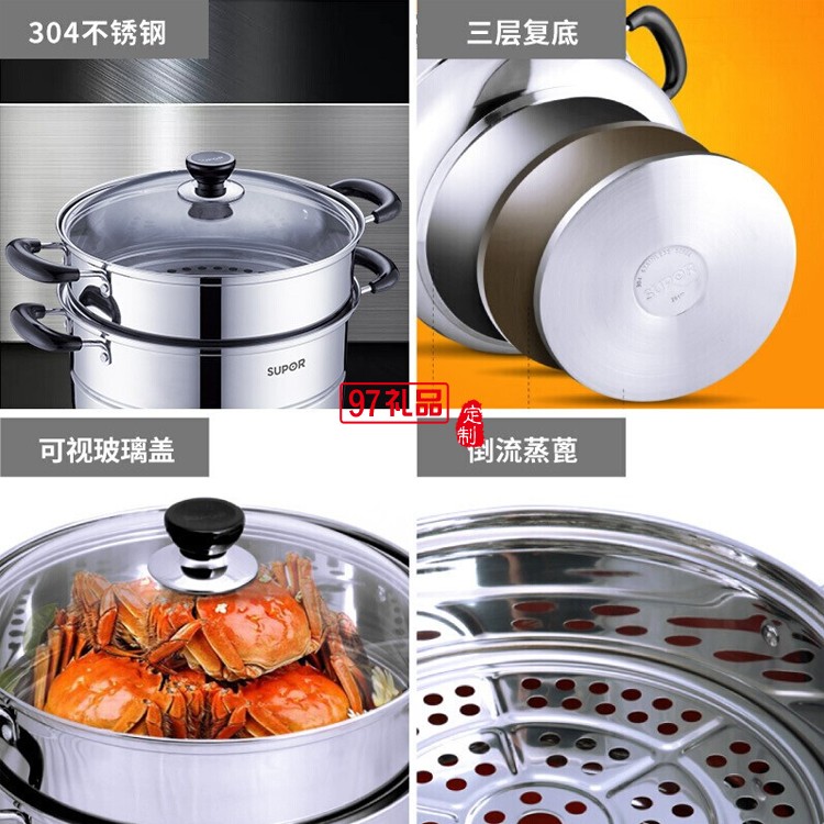 蘇泊爾304不銹鋼蒸鍋26cm雙層復(fù)底湯鍋SZ26B5定制公司廣告禮品