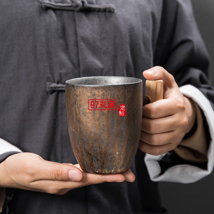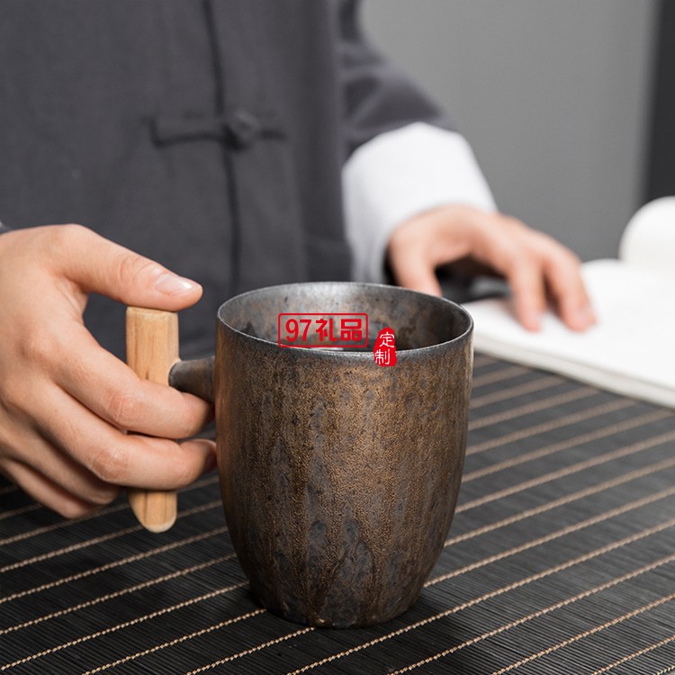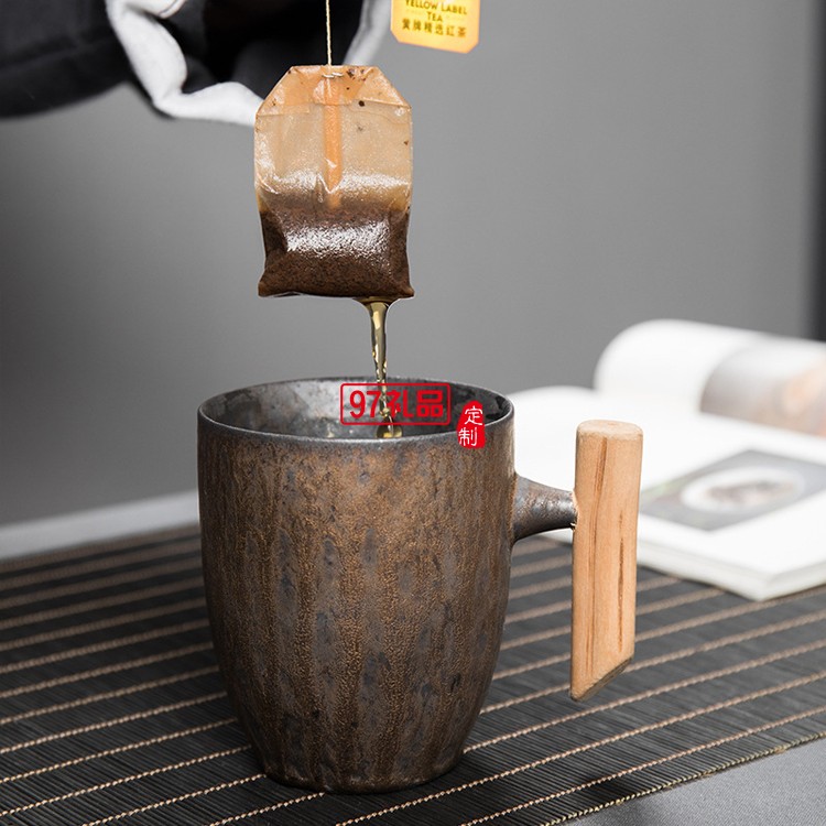 咖啡杯復(fù)古陶瓷茶杯創(chuàng)意木柄泡茶水杯個性家用奶茶杯