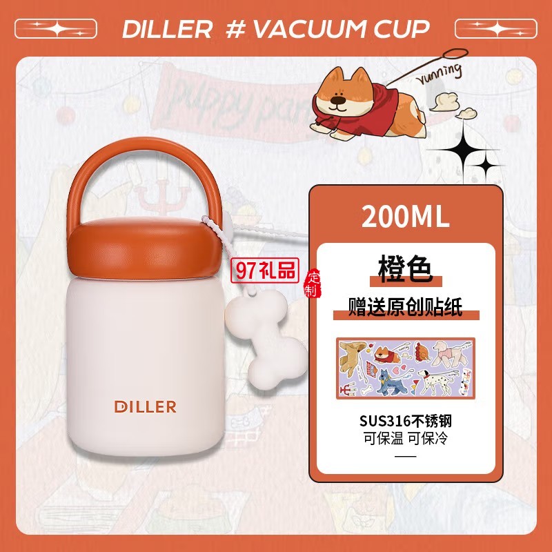 迪樂(lè)貝爾316不銹鋼保溫杯卡通男女學(xué)生水杯外出便攜上學(xué)大容量贈(zèng)送可愛(ài)貼