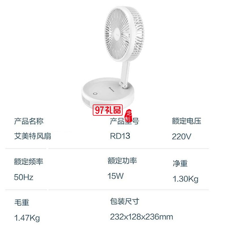 艾美特電風(fēng)扇小風(fēng)扇臺(tái)式空氣循環(huán)扇CM-RD13定制公司廣告禮品