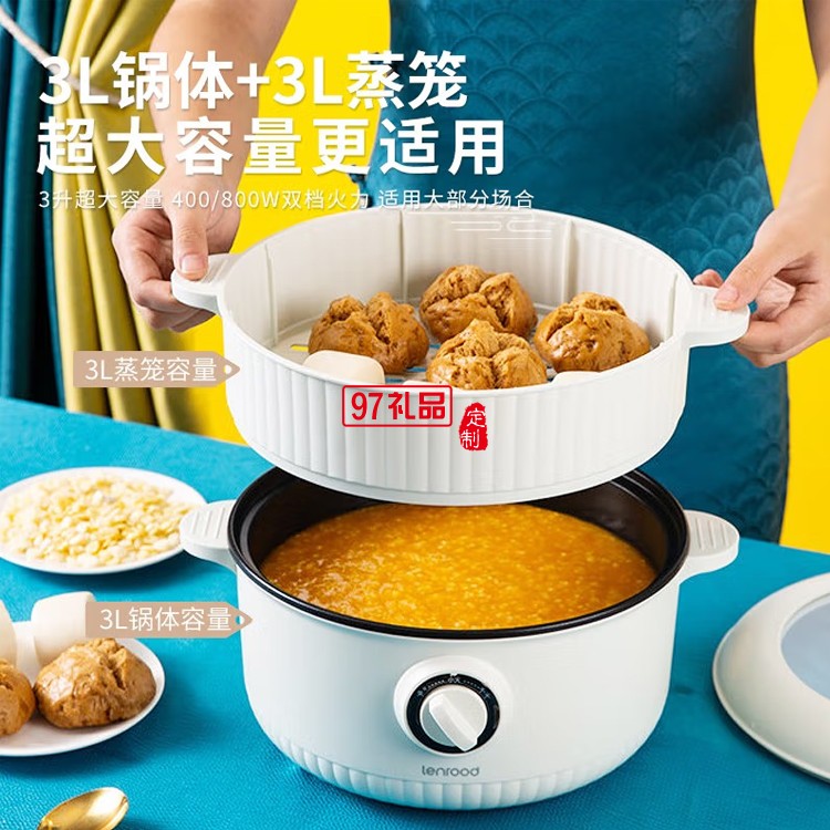 鄰鹿小電鍋電煮鍋電炒鍋多功能家用3L電鍋定制公司廣告禮品