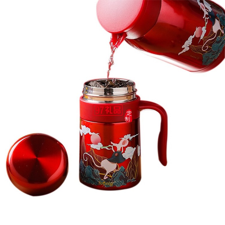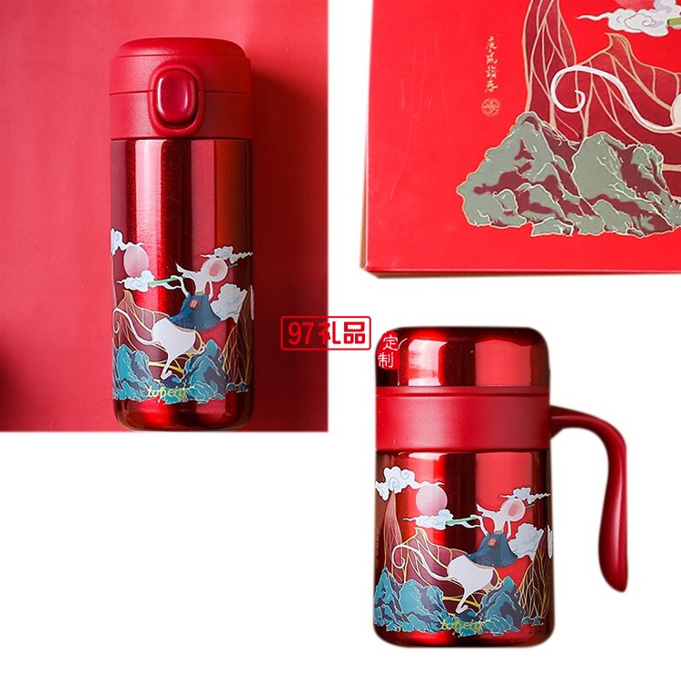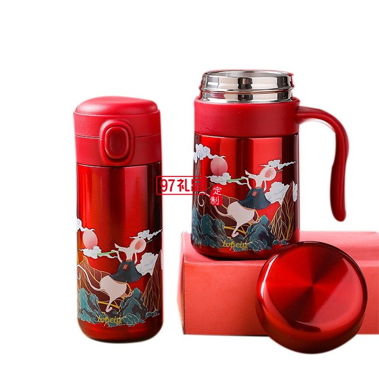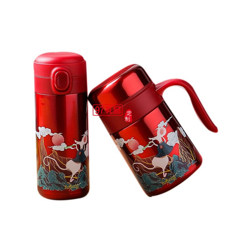 福瑞保溫杯套裝新年紅商務(wù)禮品年會(huì)禮品logo定制