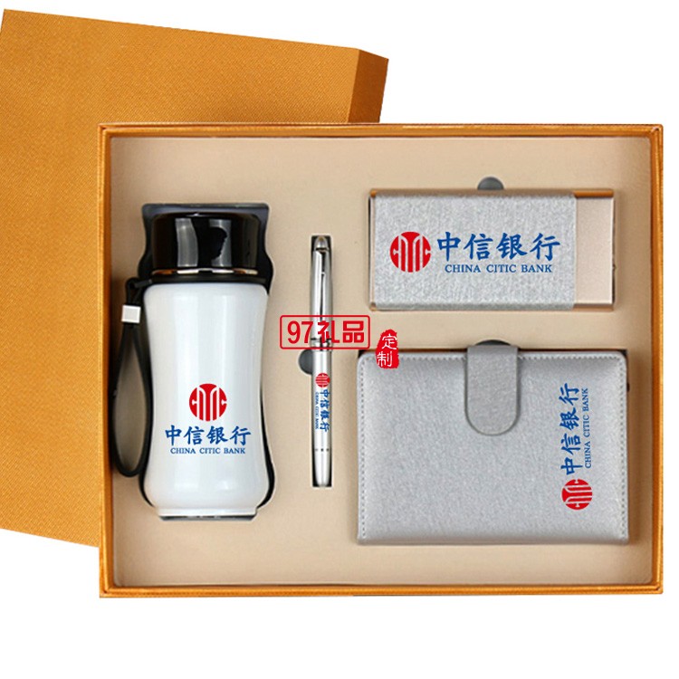 中信銀行定制案例  蠶絲商務(wù)四件套  保溫杯 筆記本 移動(dòng)電源 簽字筆