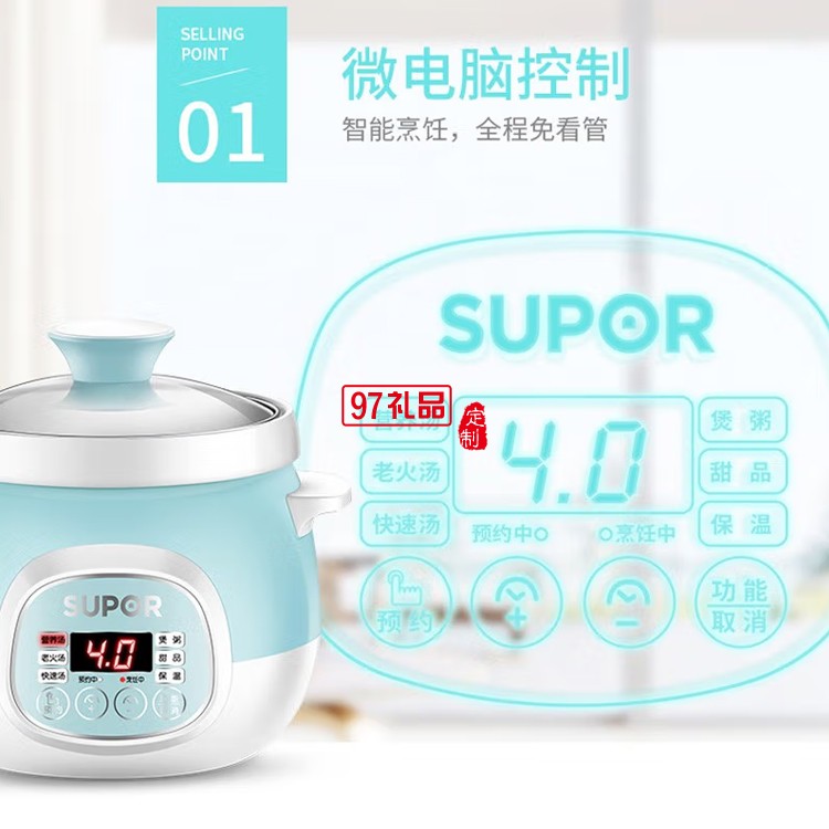 蘇泊爾電燉鍋煮粥煲湯鍋白瓷燉鍋1.5升DG15YC18定制公司廣告禮品