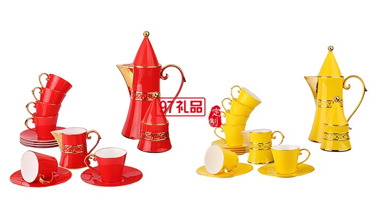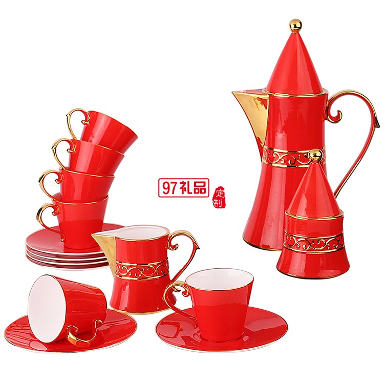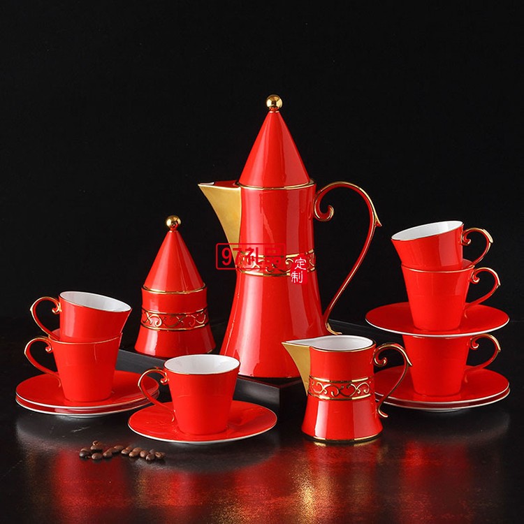紅色喜慶 紅釉茶具15頭咖啡壺 茶具套裝 可定制logo