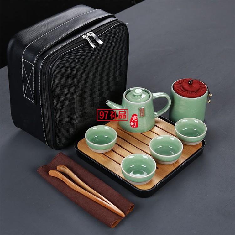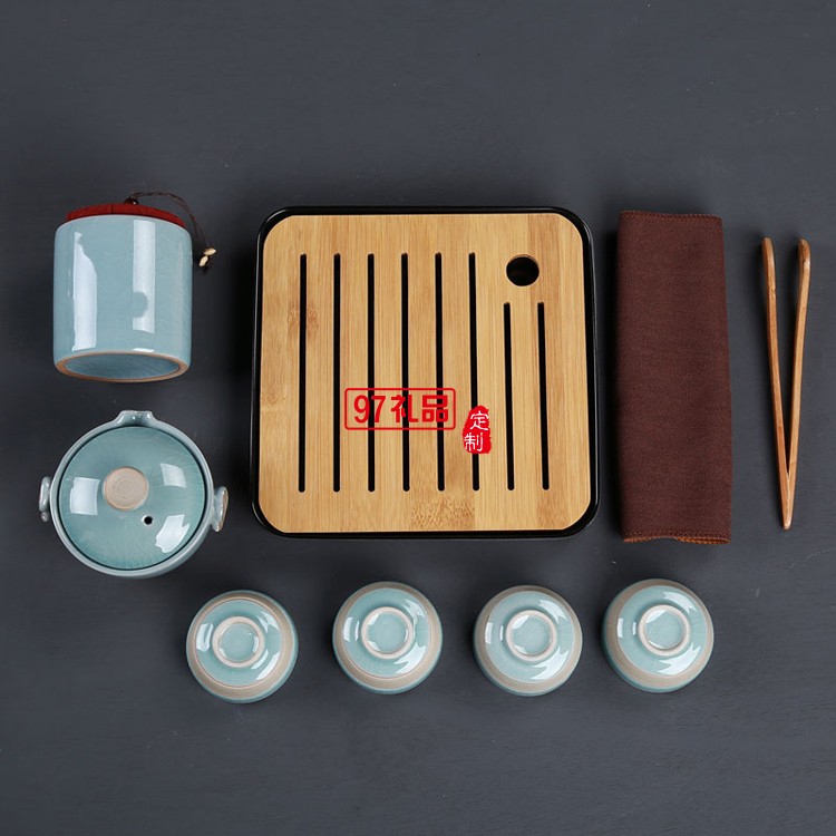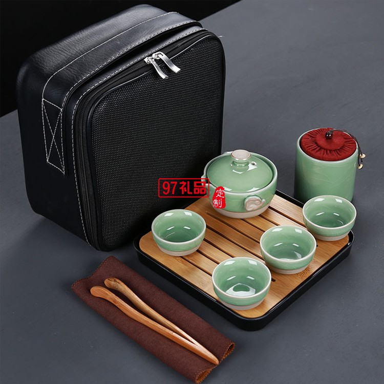 哥窯陶瓷茶具套裝 便攜式快客杯一壺4杯配旅行包