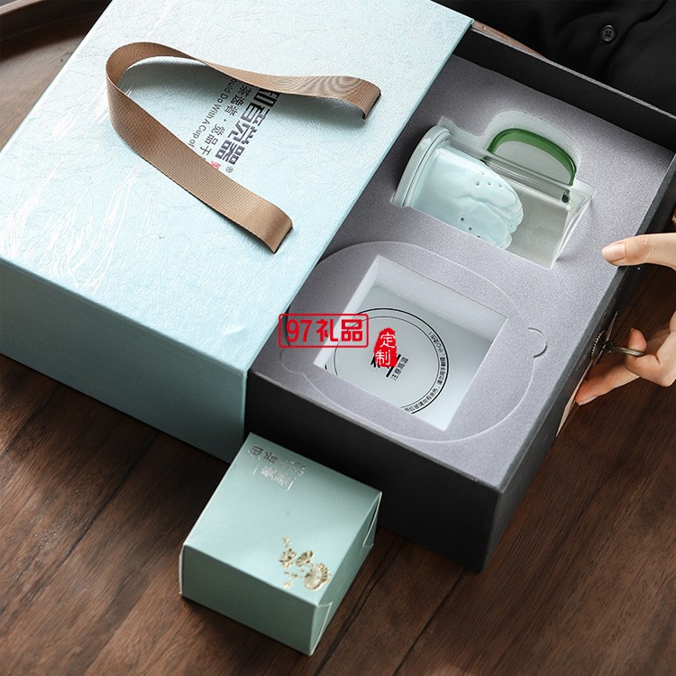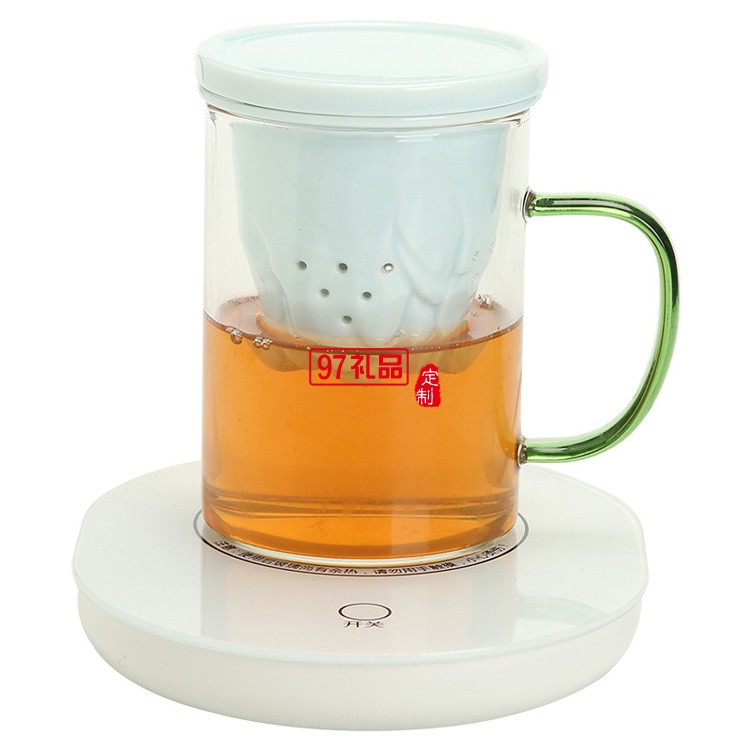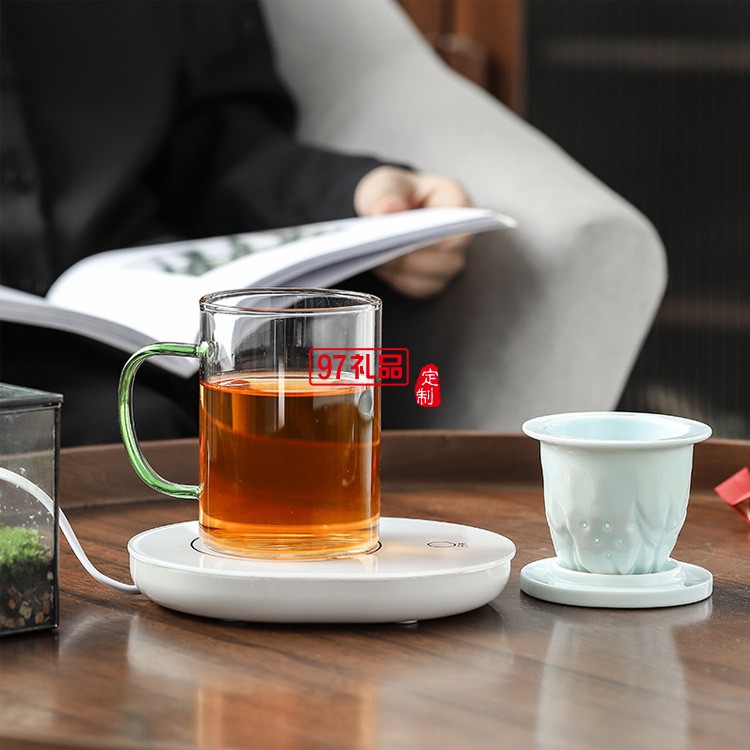 德化玻璃陶瓷茶具套裝個(gè)人杯55度恒溫杯配加熱墊商務(wù)送禮佳品