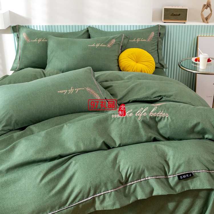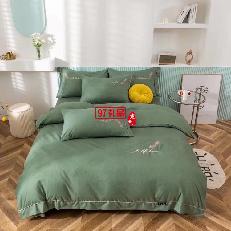 約克羅蘭YEKEROLAN 陽(yáng)絨棉刺繡四件套被套枕套定制公司廣告禮品