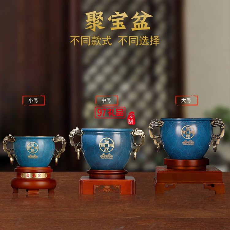 聚財(cái)純銅聚寶盆招財(cái)擺件商務(wù) 辦公室創(chuàng)意禮品黃銅金屬工藝品