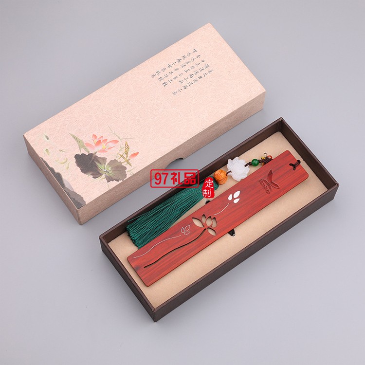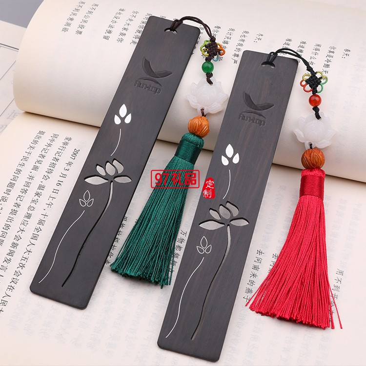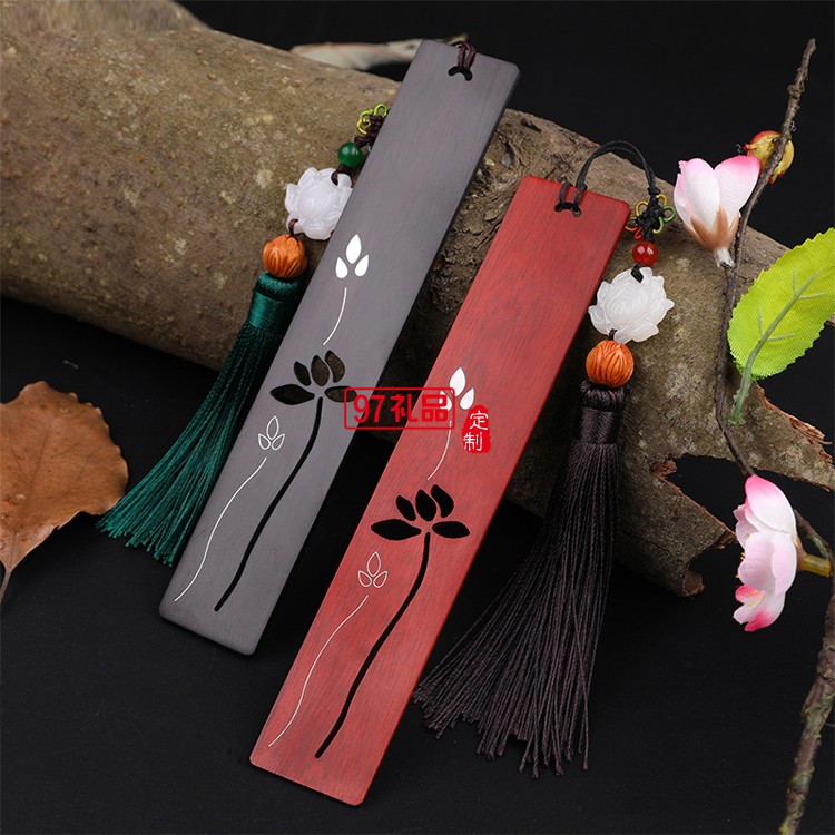 創(chuàng)意古典黑檀書簽 手工鑲銀復(fù)古書簽 鏤空荷花鑲銀書簽