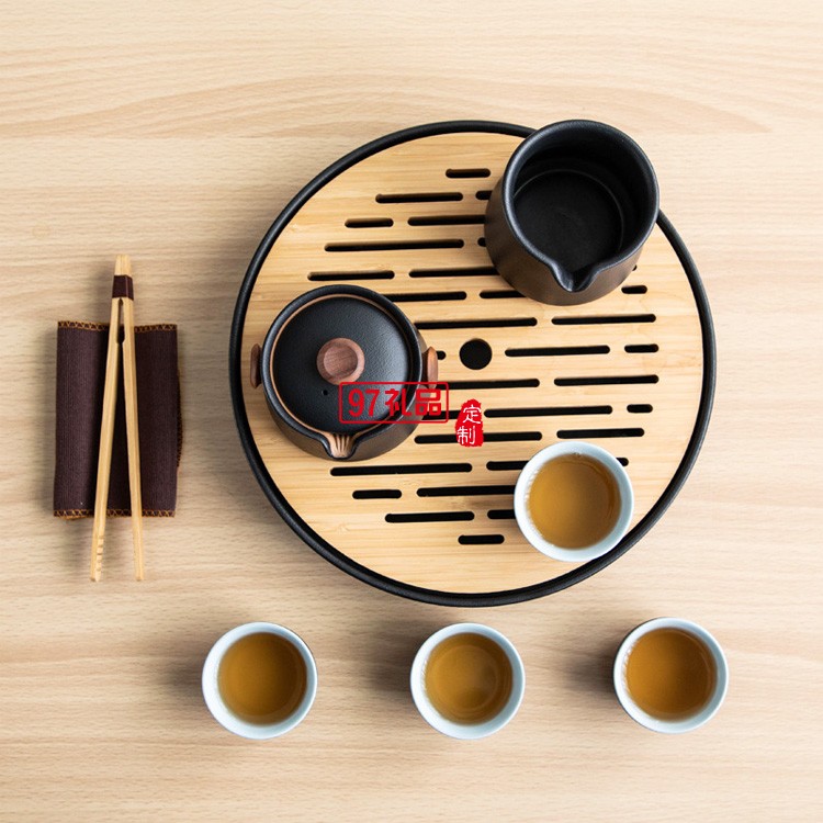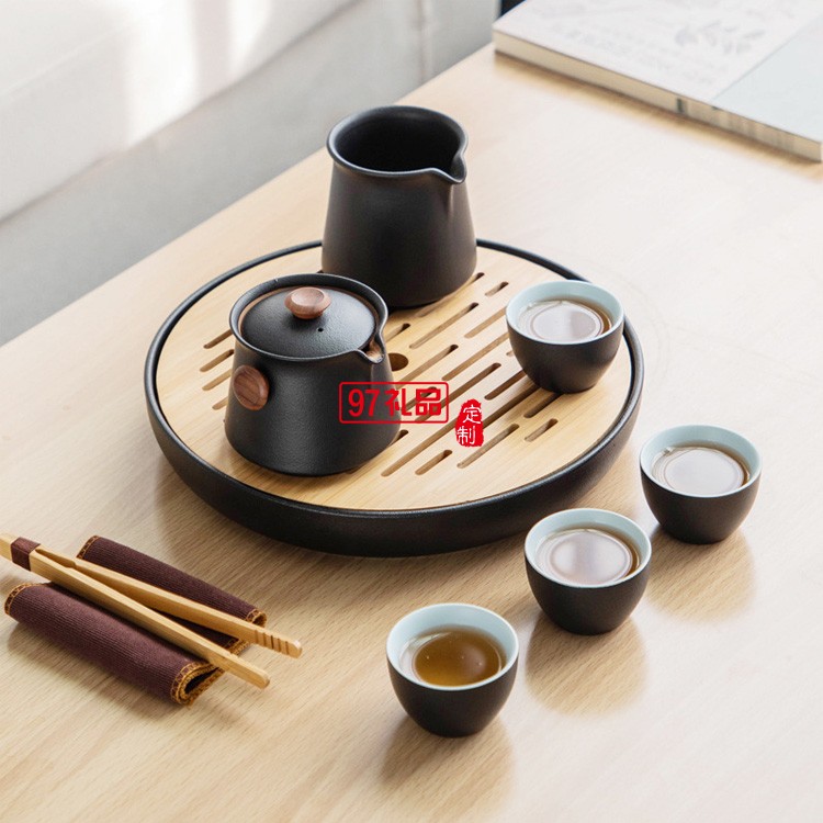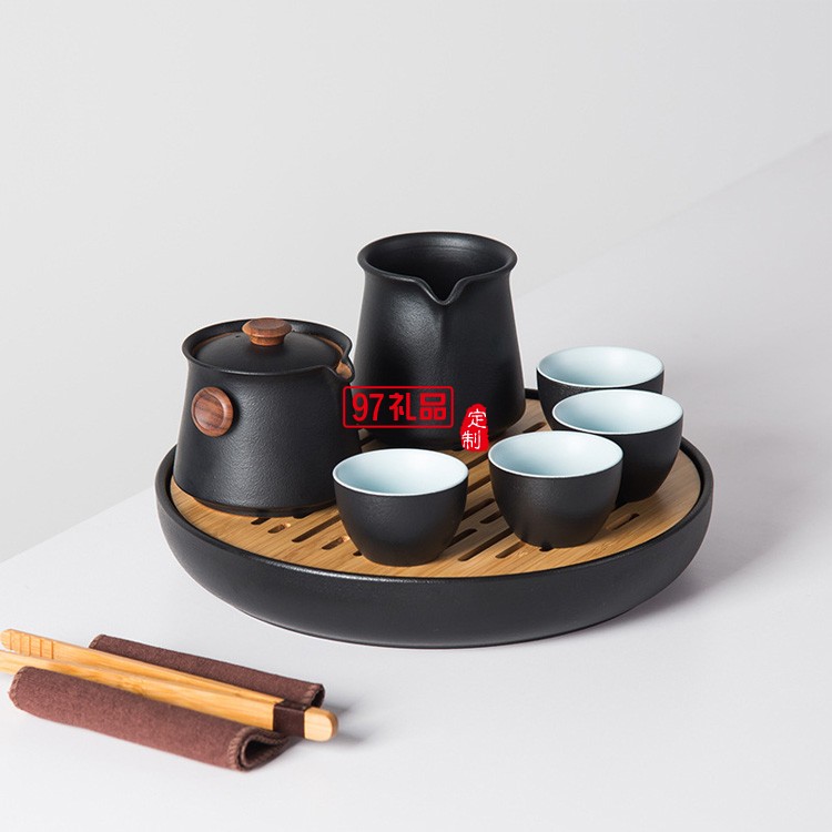 茶具套裝 實(shí)用日式簡約黑陶瓷辦公室家用客廳干泡小型小套帶茶盤