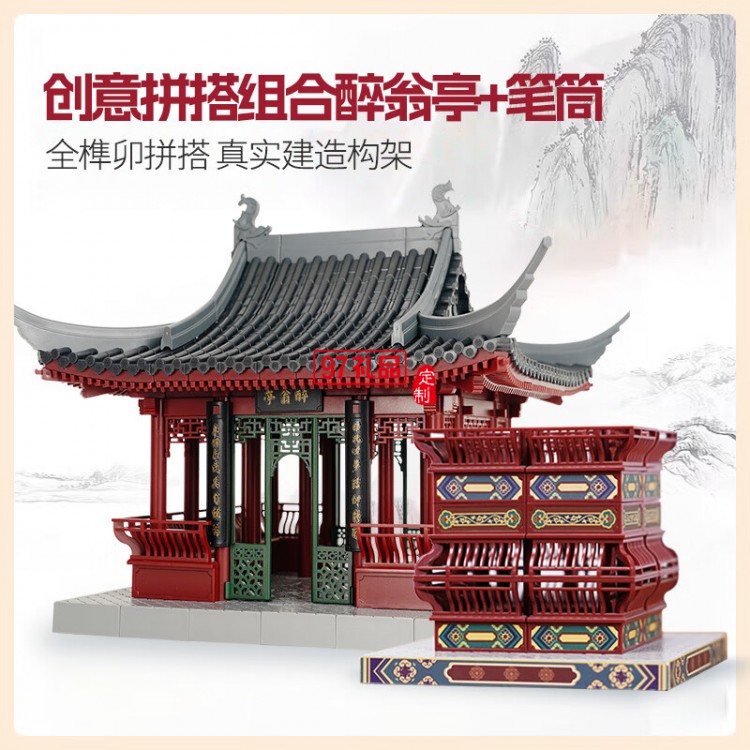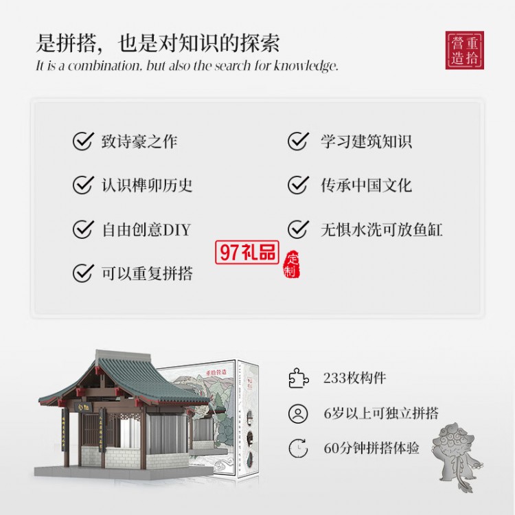 通用體系榫卯積木玩具中國(guó)風(fēng)古建筑潮玩禮物拼裝模型diy 陋室銘