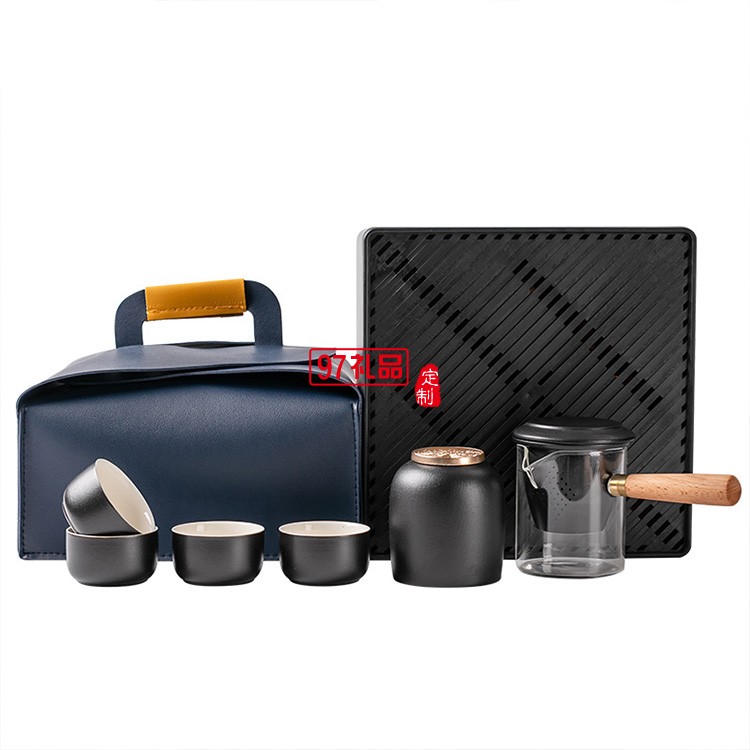 新品創(chuàng)意陶瓷便攜旅行茶具套裝茶盤皮包戶外一壺四杯 可定制logo