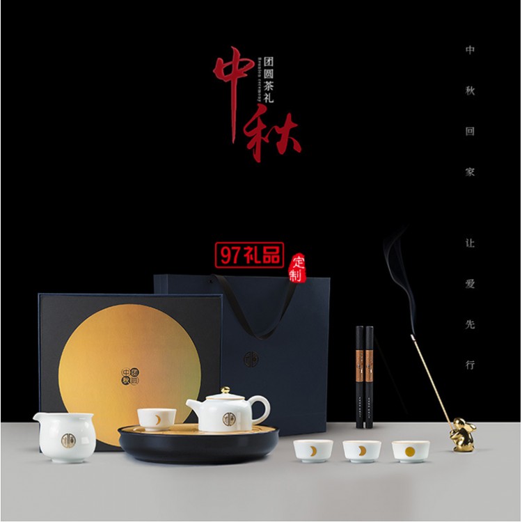 鵝絨白中秋團圓茶禮旅行便攜整套茶具新款送禮中秋禮盒創(chuàng)意禮品