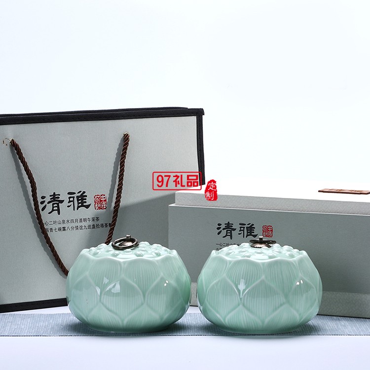 配 置:2罐1盒1皮袋 材 質(zhì):陶瓷 工 藝:高溫?zé)?材質(zhì)堅(jiān)韌,不易碎 茶葉容量:170g/罐 340g/盒(以龍井茶為例) 包裝方式:禮盒包裝 入箱數(shù):12套 盒子規(guī)格:35.5*20*13 罐子規(guī)格:最大直徑13.7*高10.5