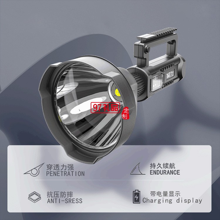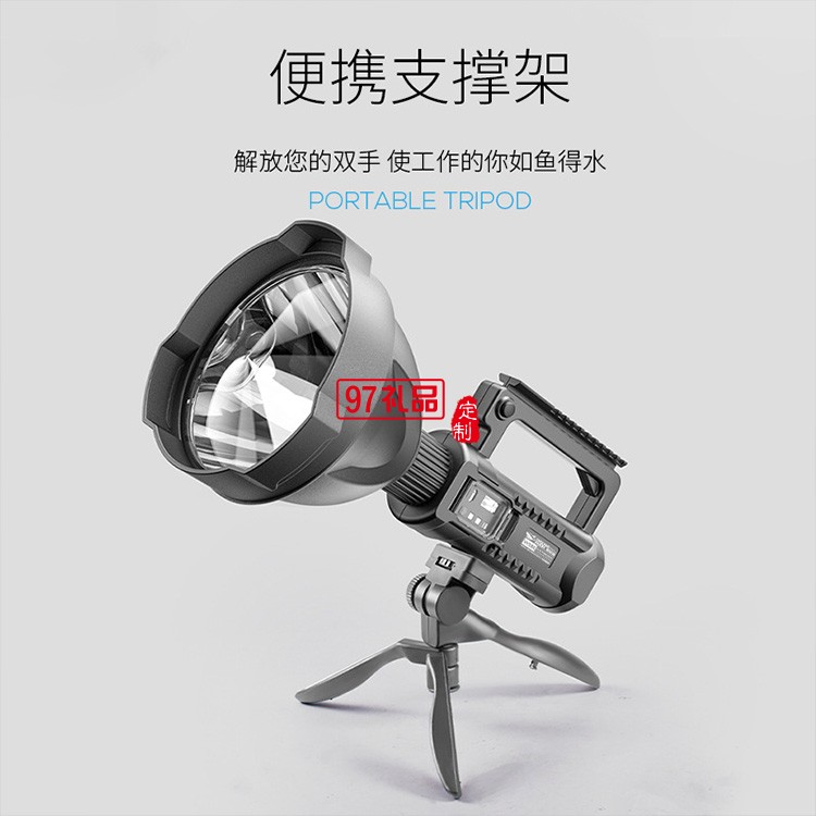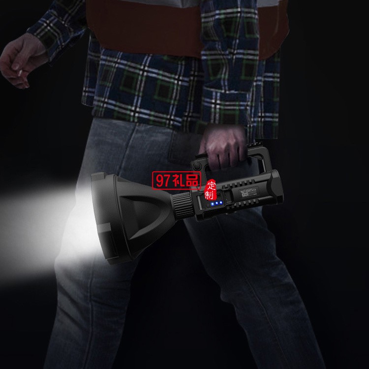 強光戶外手提燈露營可充電led探照燈 塑料巡邏手電筒