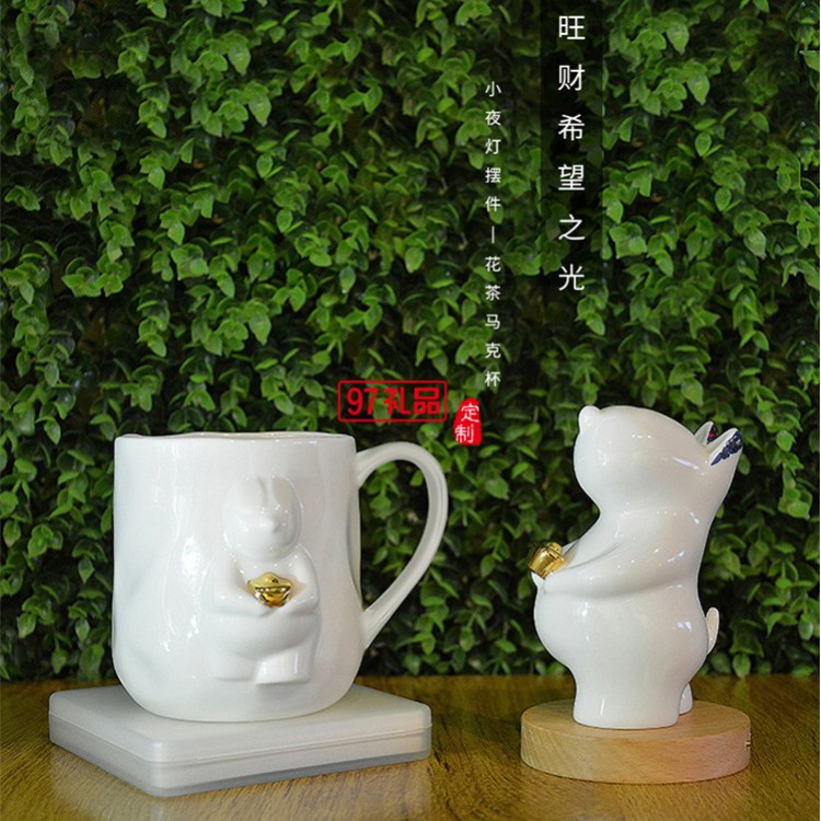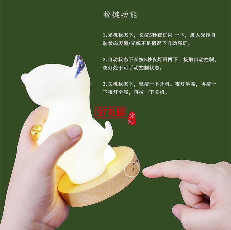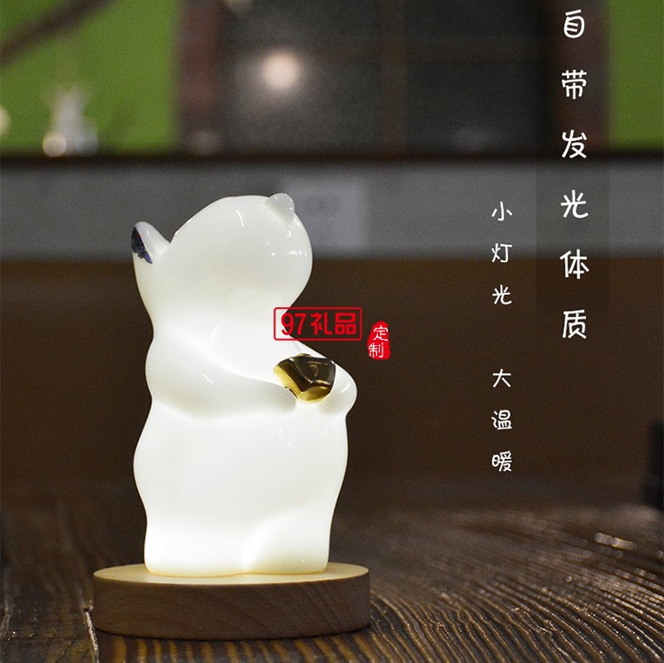 貴彬旺財(cái)陶瓷小夜燈LED光控充電擺件送客戶(hù)禮品定制