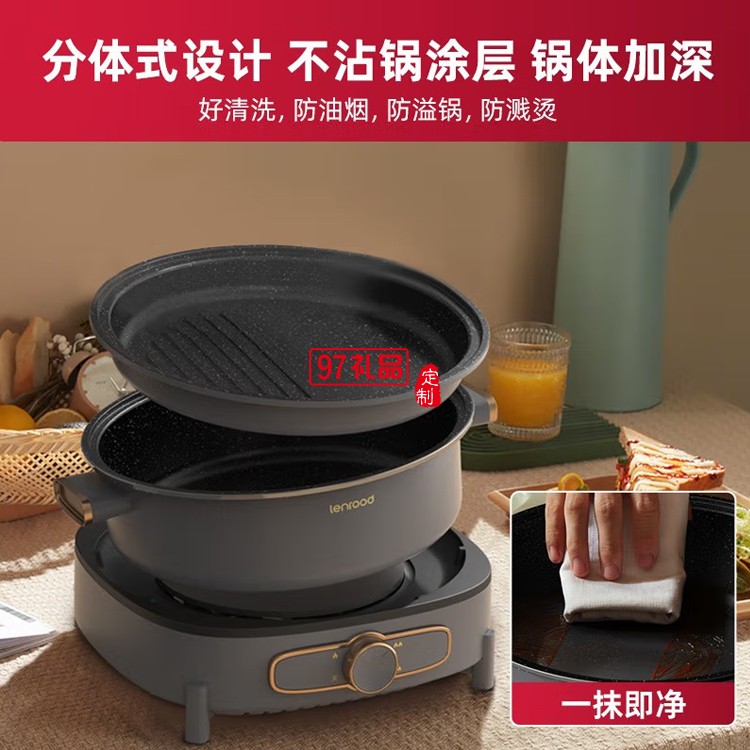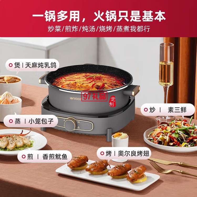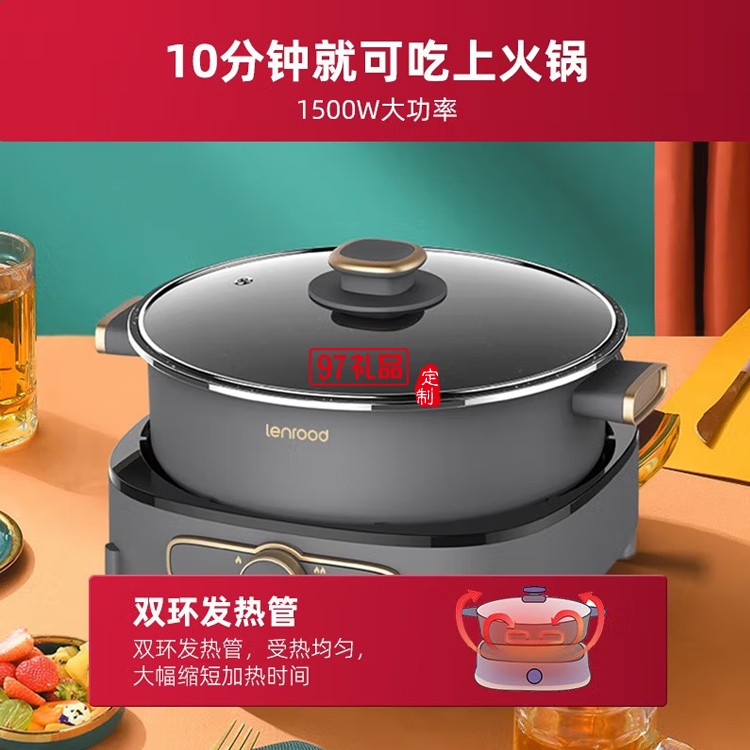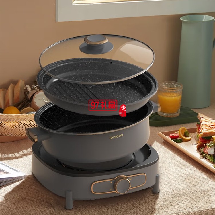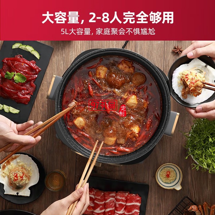 鄰鹿電火鍋電炒鍋5L多功能料理鍋麥飯石不粘鍋定制公司廣告禮品