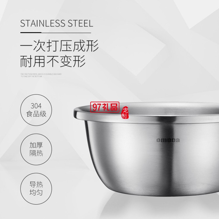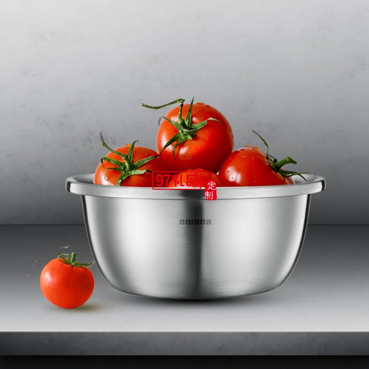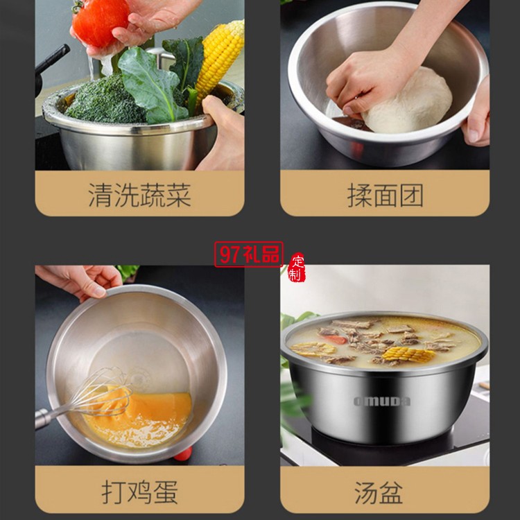 歐美達(dá)食品級(jí)304不銹鋼盆子廚房打蛋和面漏湯盆定制公司廣告禮品