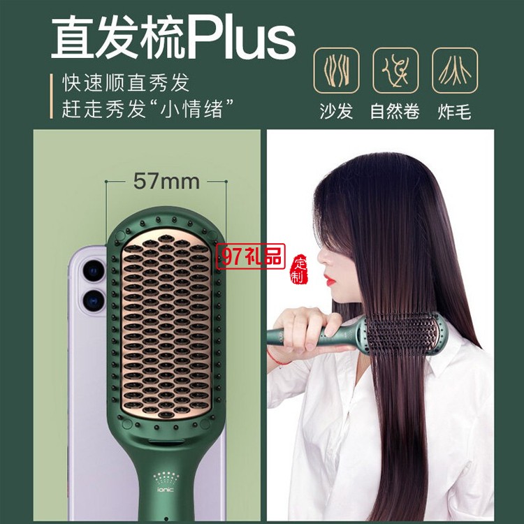 負(fù)離子直發(fā)梳子 直卷兩用直發(fā)夾板 卷發(fā)棒914F定制公司廣告禮品
