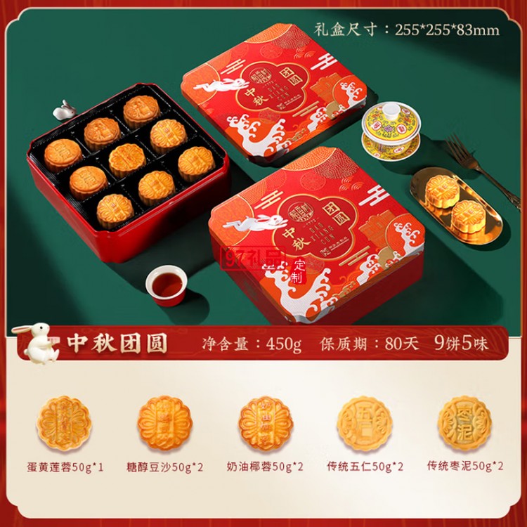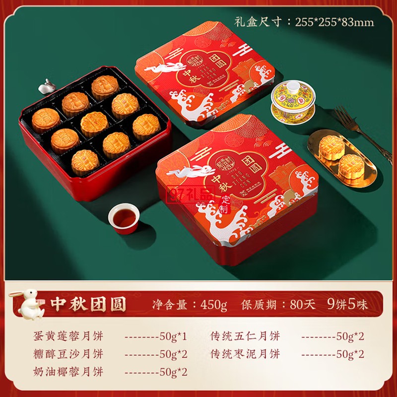 中秋節(jié)商務(wù)送禮團購福利 稻香村中秋團圓450g【鐵盒9餅5味】