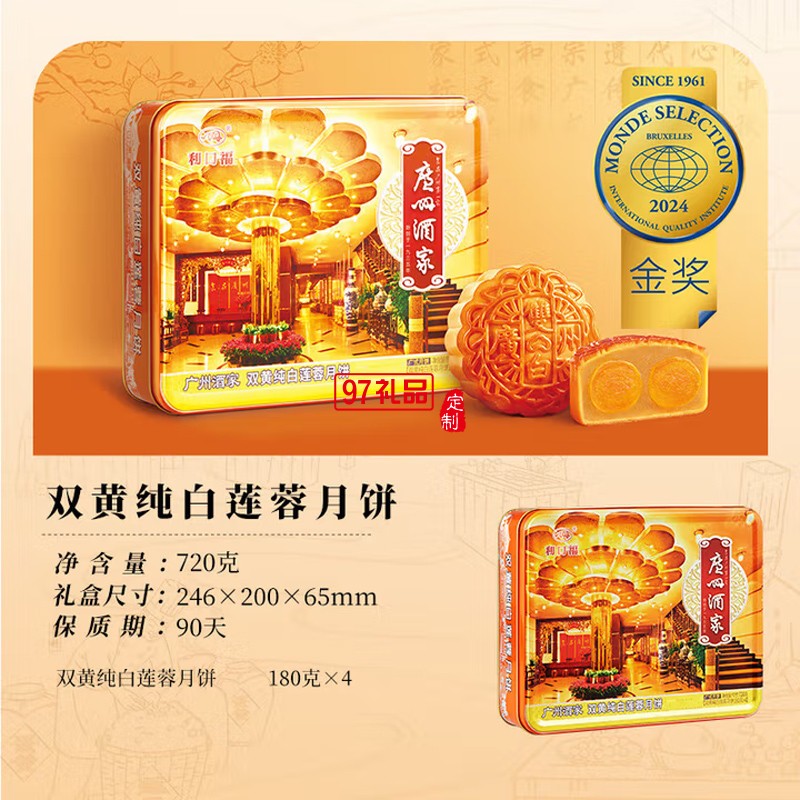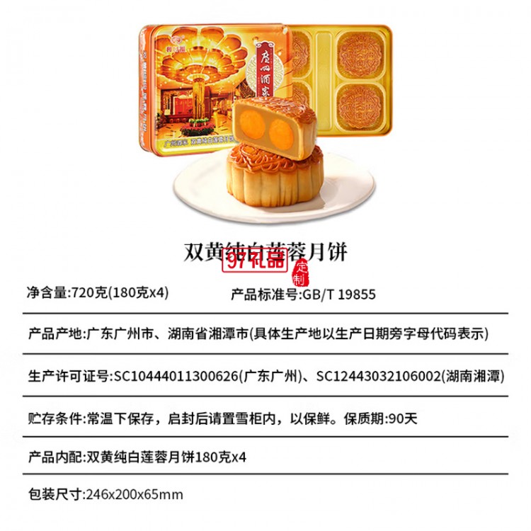 廣州酒家雙蛋黃純白蓮蓉月餅禮盒廣式傳統(tǒng)經(jīng)典鐵盒月餅