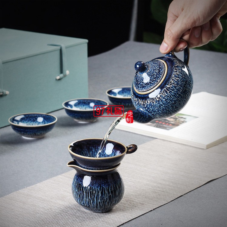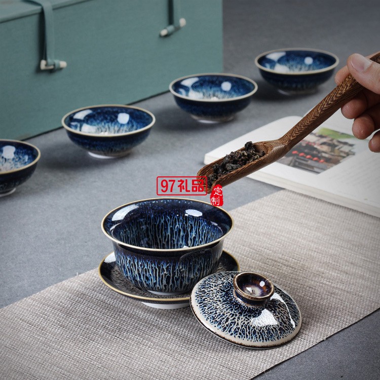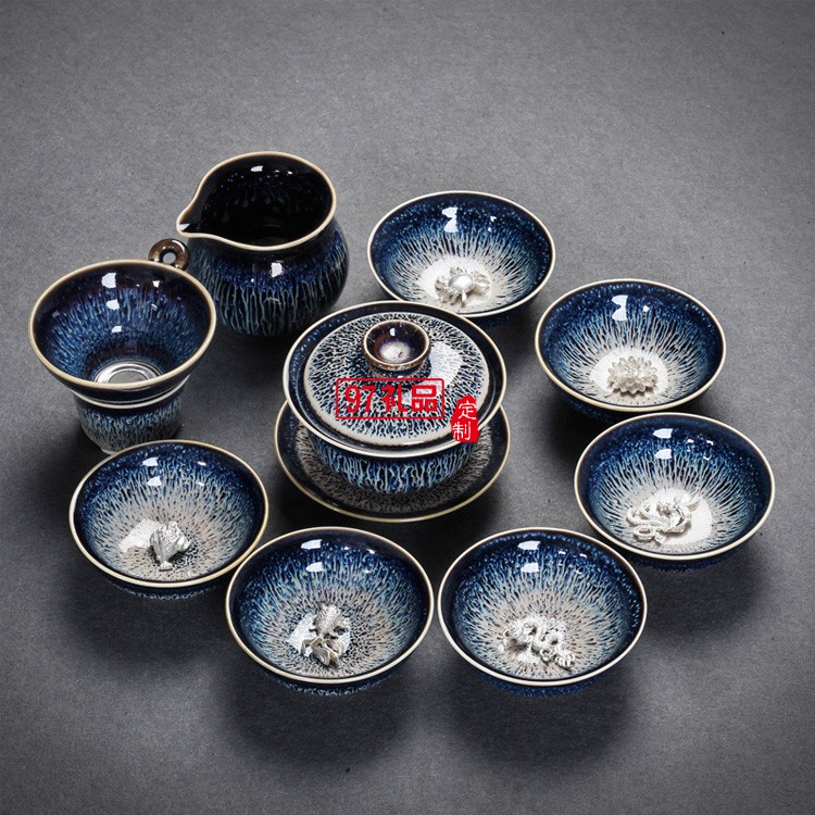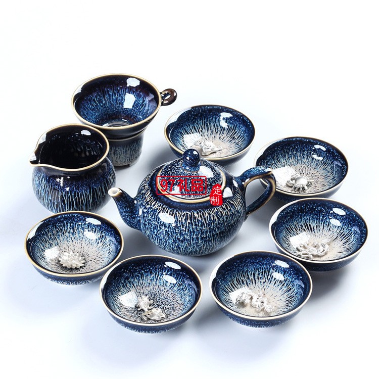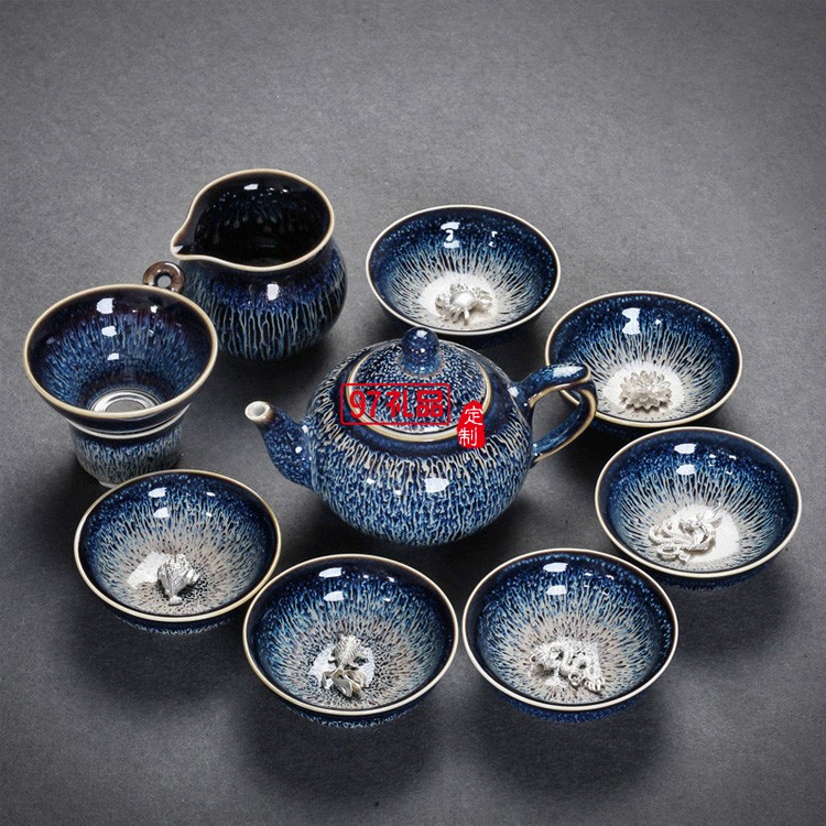 景德鎮(zhèn)鑲銀茶具辦公陶瓷家用套裝整套功夫茶具茶壺高檔商務(wù)禮品定制