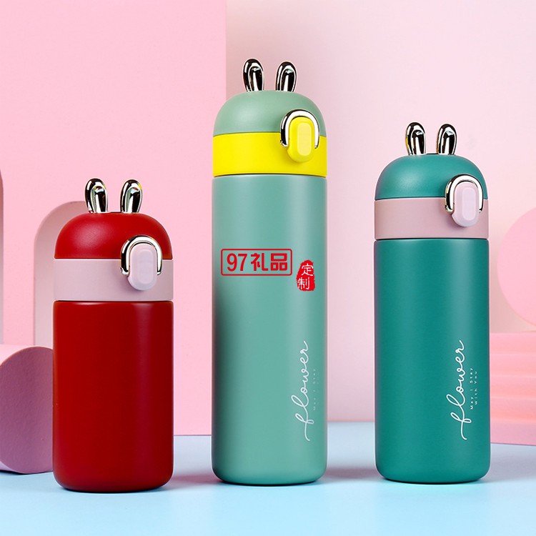 開(kāi)學(xué)季禮品卡通兔耳朵兒童保溫水杯 糖果色可愛(ài)彈跳學(xué)生杯子