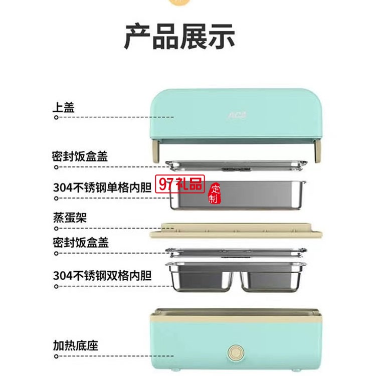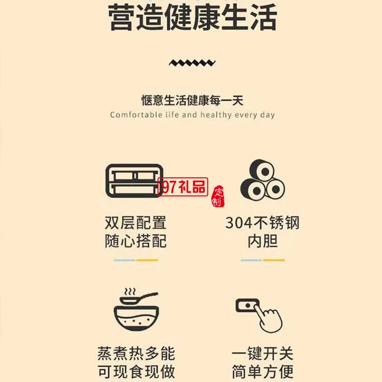 雙層便攜蒸汽飯盒辦公室出差小巧上蒸下煮定制公司廣告禮品