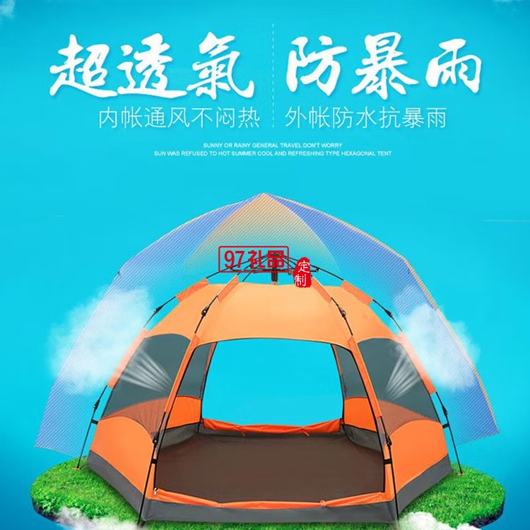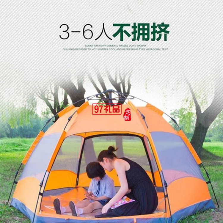 六角全自動(dòng)戶外大帳篷雙人防雨露營(yíng)帳篷MKZ-004定制公司廣告禮品