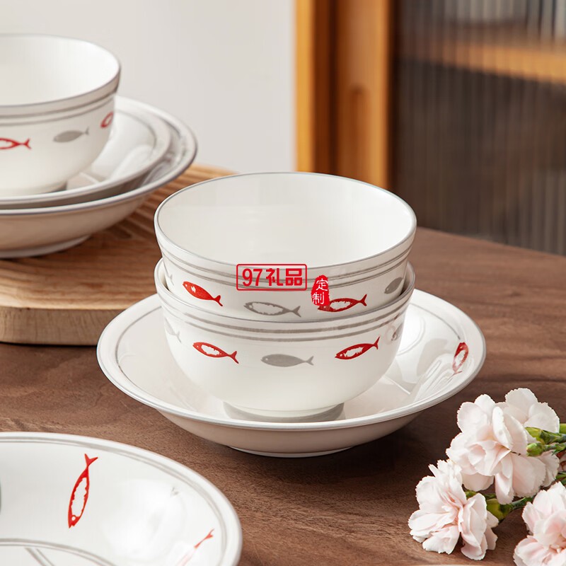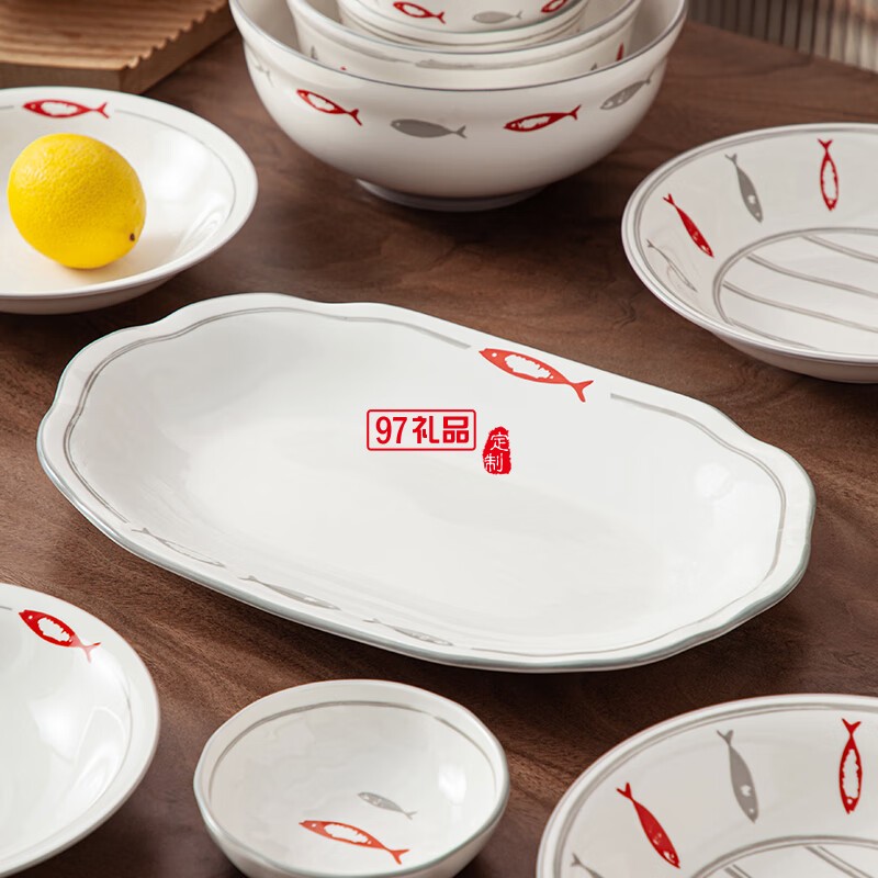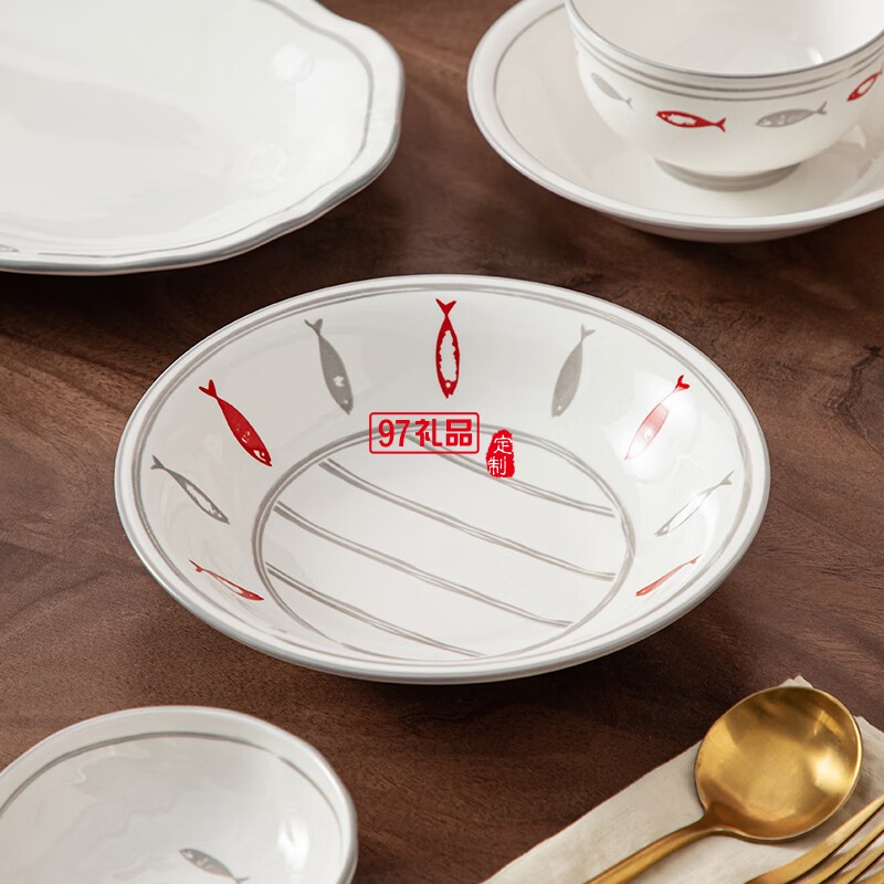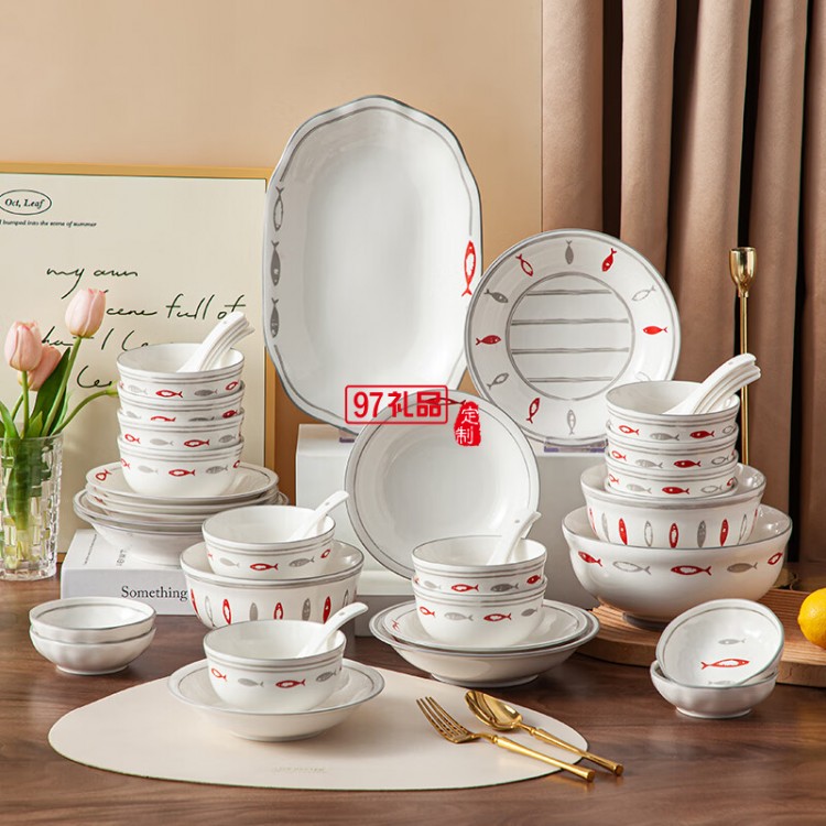 豪愛佳高溫釉下彩餐具套裝魚你一起42件套
