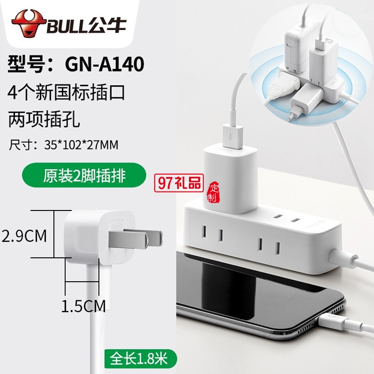 公牛迷你插座新國標(biāo)插口插排延長線接線板GN-A140定制公司廣告禮品