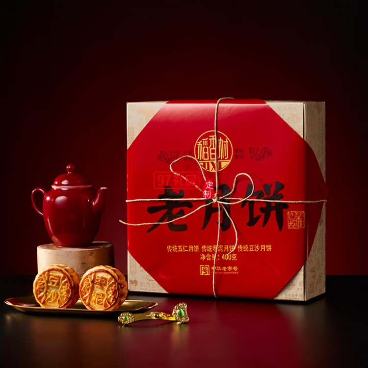 稻香村老月餅400克五仁豆沙棗泥組合中秋節(jié)禮品老式餅盒裝 400克老月